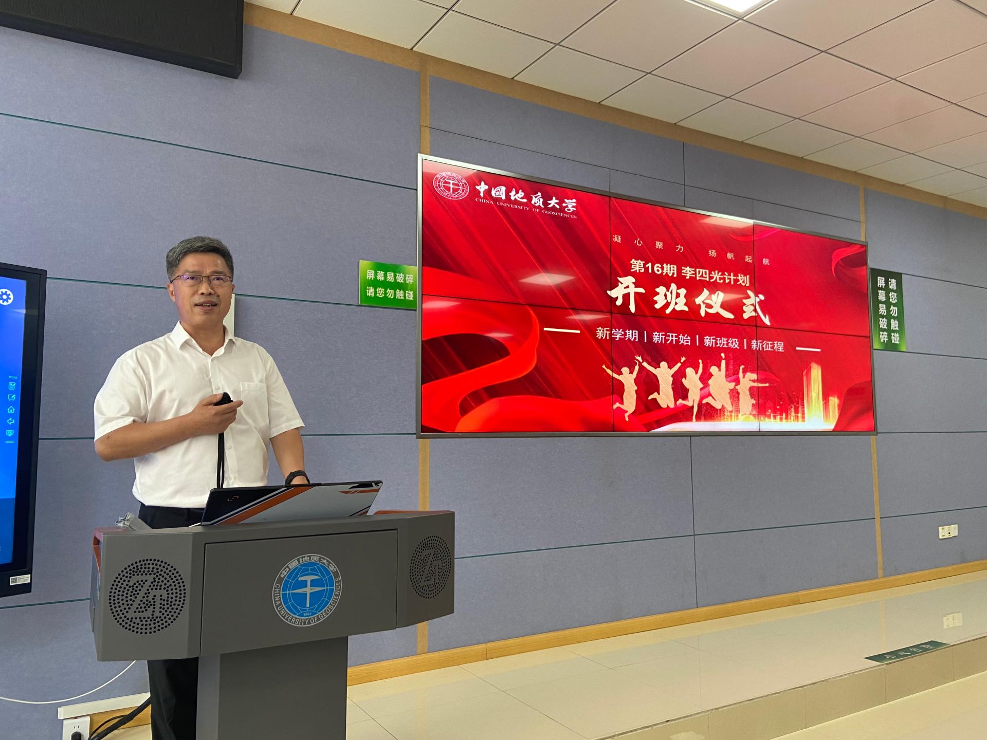地大新闻网讯(通讯员 潘娣)近日,第十六期“李四光计划”开班仪式在南望山校区教学综合楼C0106教室举行。副校长王华,本科生院常务副院长周建伟,第十六期“李四光计划”成长导师沈传波,第十六期“李四光计划”班主任王莹,学员导师代表和全体第十六期“李四光计划”学员参加了开班仪式,王莹主持仪式。