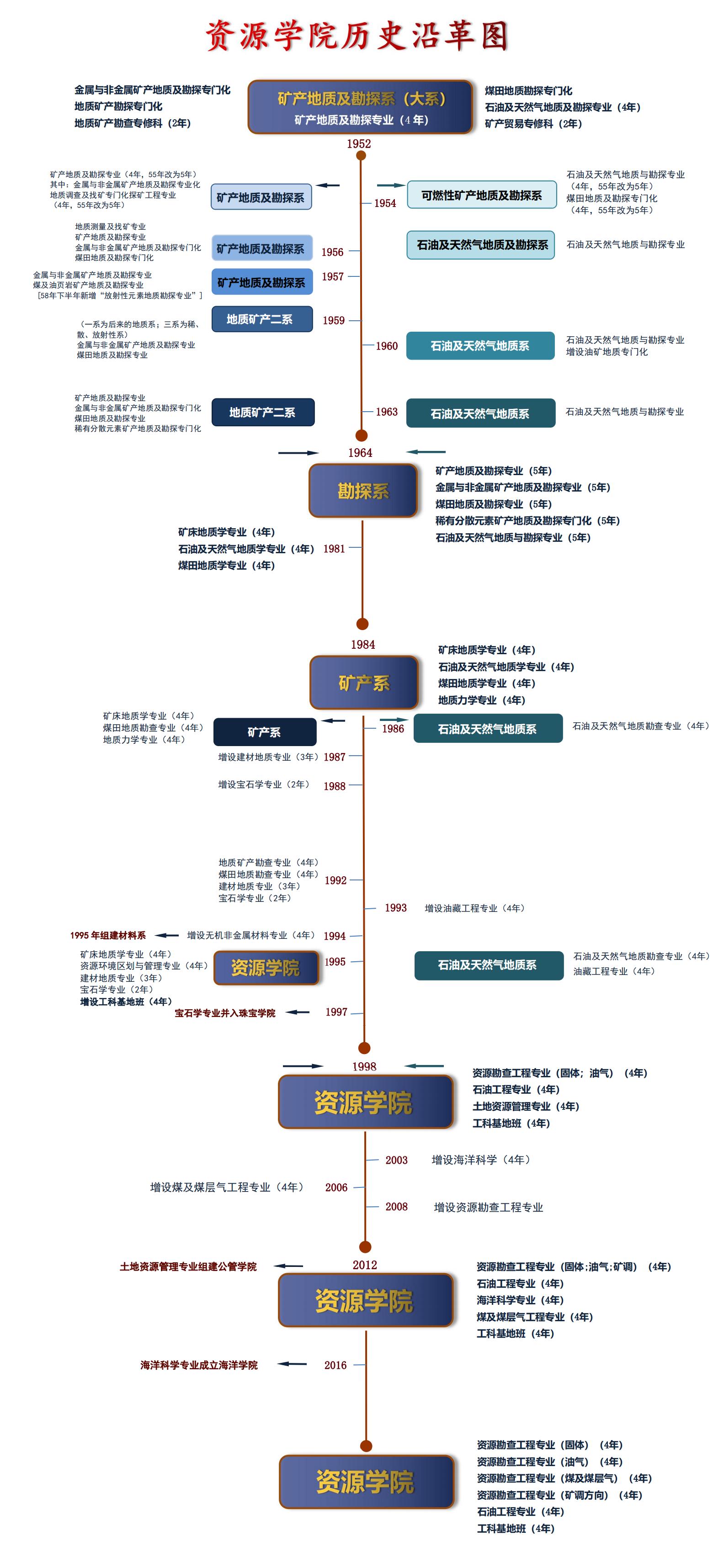 资源学院70年的办学史,是与党和国家同呼吸共命运、与中国自然资源行业同发展的奋进史。70年来,一代代资源人把“艰苦朴素,求真务实”校训精神、“谋求人与自然和谐发展”办学价值观全面融入事业发展全过程,为祖国寻找矿藏,把论文写在祖国大地,让“地质报国”精神薪火相传。一批批资源学子身怀“把青春献给祖国”的热情,向科学进军、向困难进军、向荒原进军,到祖国最需要的地方去,到最艰苦的地方去,投身火热的生产建设第一线,各大油田公司、地勘单位、矿山企业都活跃着他们的身影,国家资源能源领域重大工程、重大科技攻关项目都凝聚着他们的智慧。