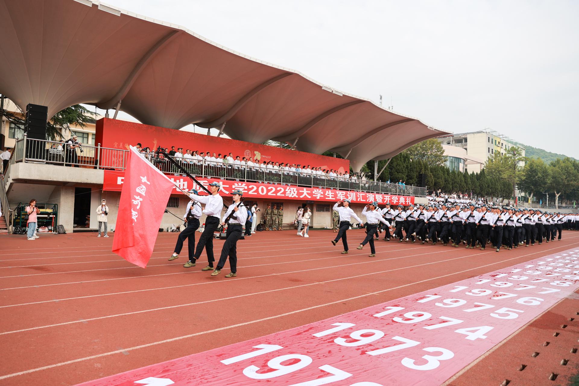 地大新闻网讯(记者 王俊芳 张玉贤 赵婧萱 孙彦钦)9月23日,米兰milan官方网站(武汉)2022级大学生军训汇演暨开学典礼在南望山校区西区操场举行。中国科学院院士殷鸿福、金振民,校领导黄晓玫、王焰新、唐辉明、赖旭龙、王华、王林清、刘杰、刘勇胜、唐忠阳,党委常委、宣传部部长储祖旺,教育部直属高校党建工作联络员谢守成,空军预警学院二大队副大队长张体用,教师代表、学生代表,部分二级单位负责人及2022级全体本科新生参加典礼。