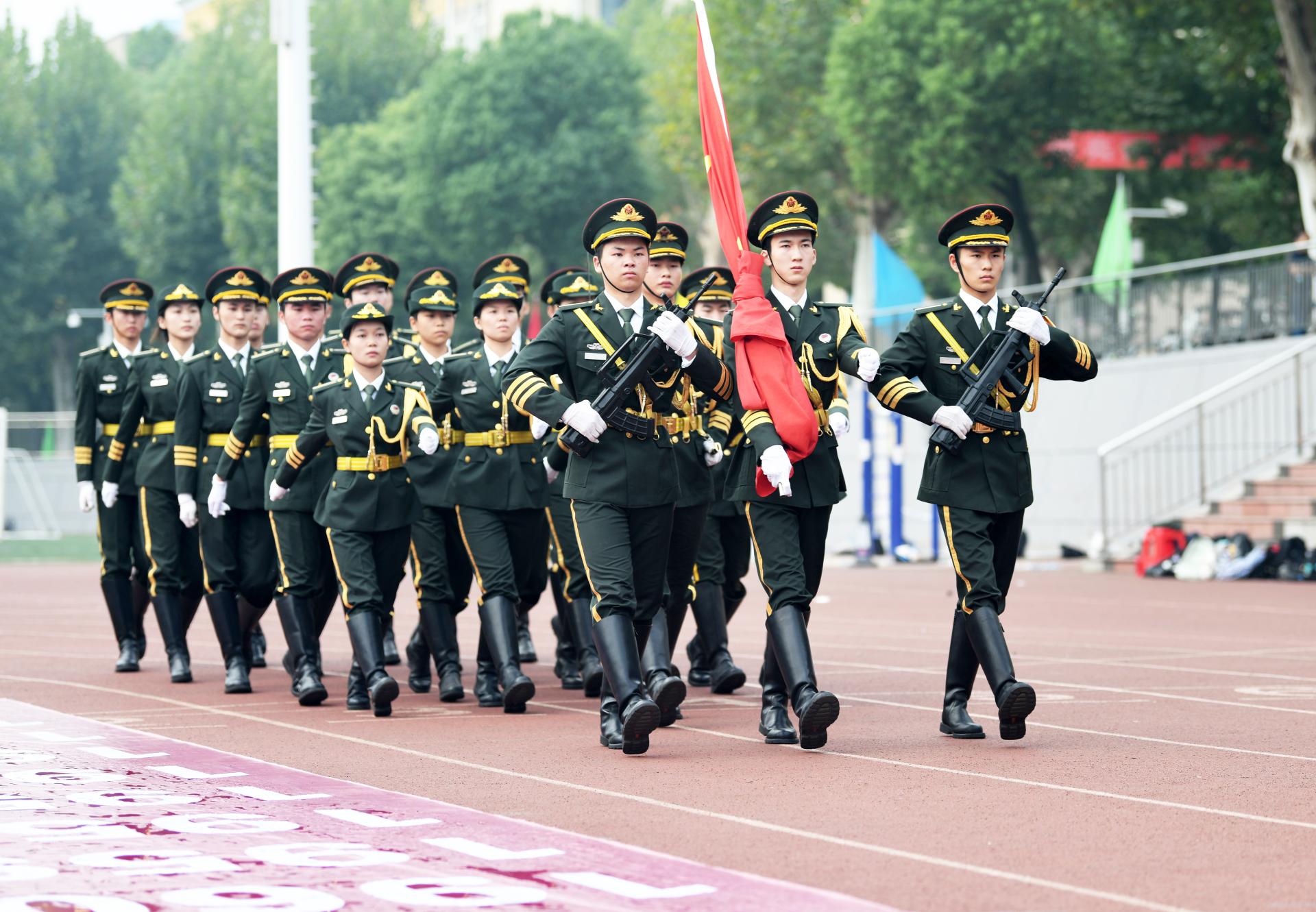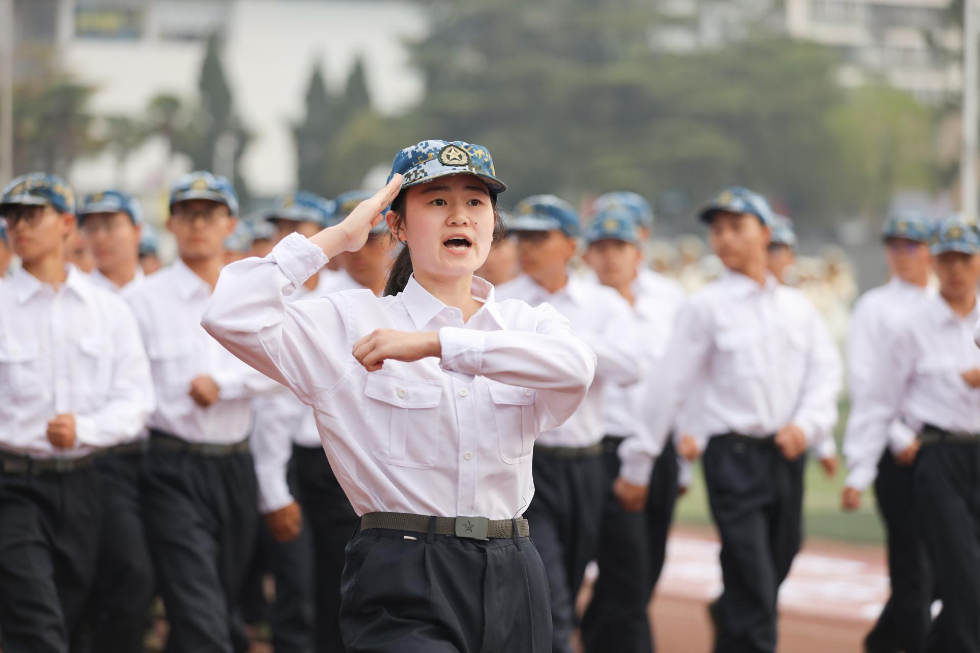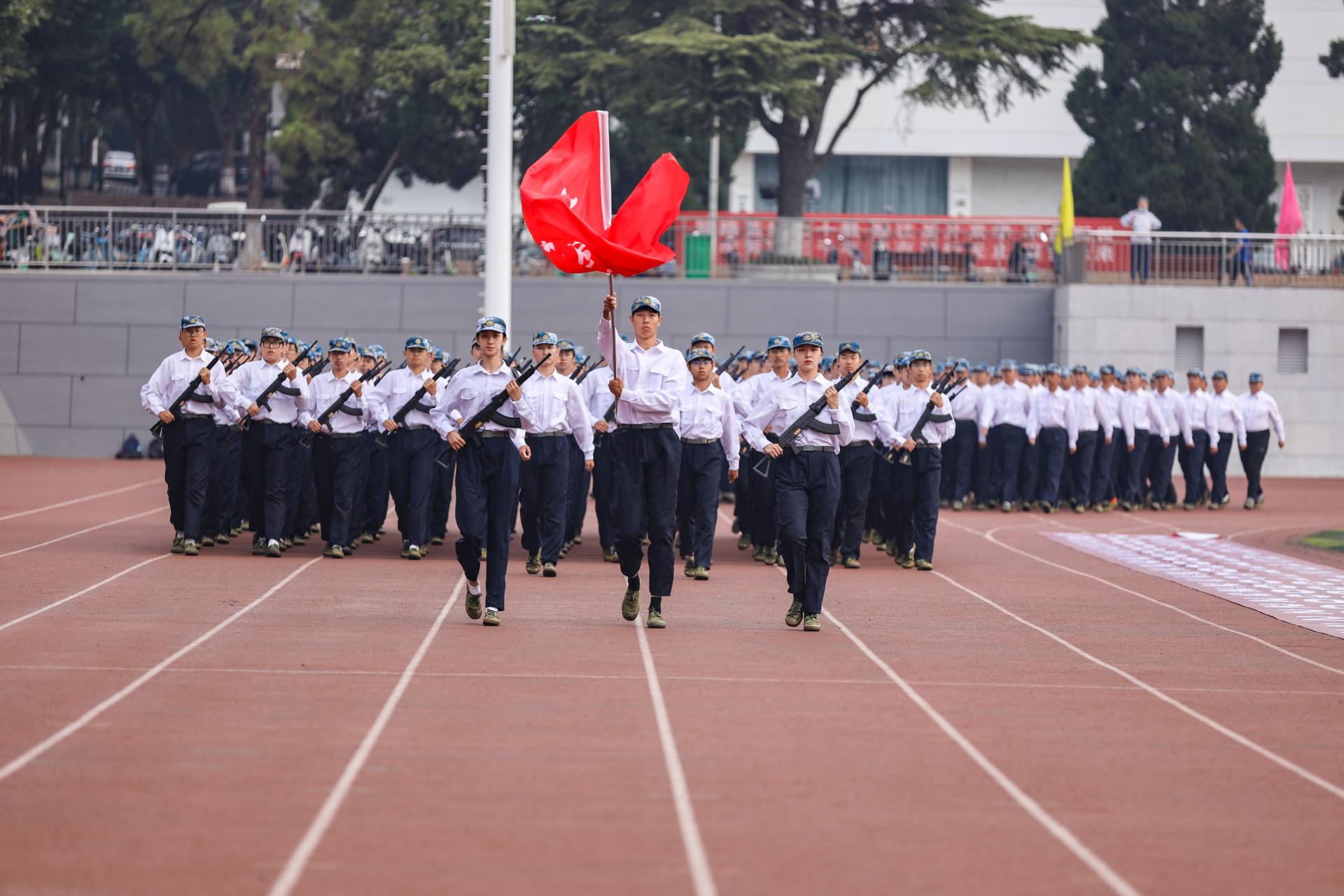 各学院新生组成的27个方阵,依次走过主席台前接受检阅,以饱满的精神、挺拔的军姿、整齐的步伐和嘹亮的口号,展现新生昂扬向上的精神风貌。“听党话,感党恩,跟党走,请党放心、强国有我”口号嘹亮,“艰苦朴素、求真务实”校训响彻上空。