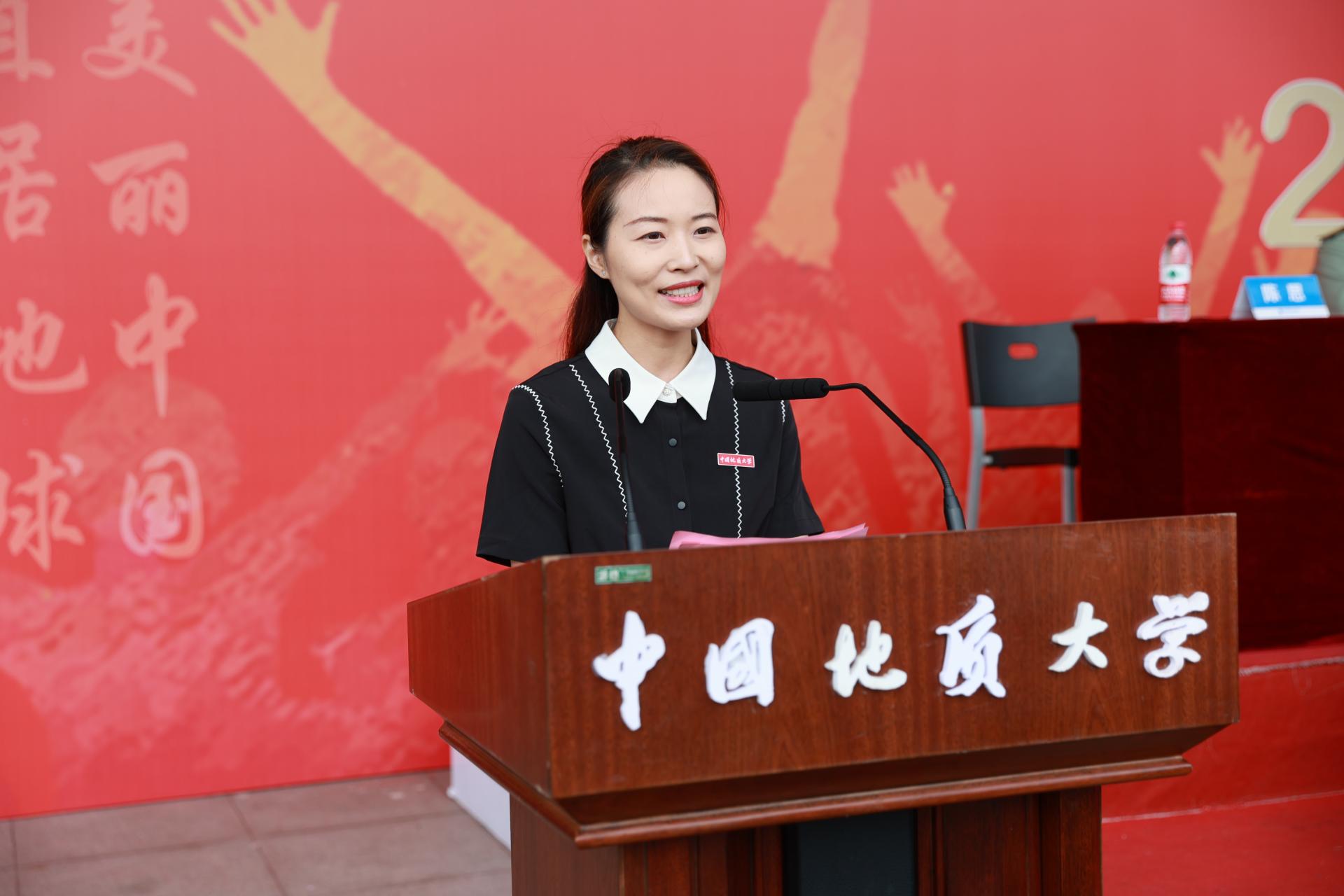教师代表、资源学院副教授陈思,以“爱国红的底色”“奋斗金的主色”“青春蓝的亮色”,向新生们展示了多彩地大的向上风貌。她希望同学们能够树立爱国之心,培养奋斗之志,在地大实现青春梦想。
