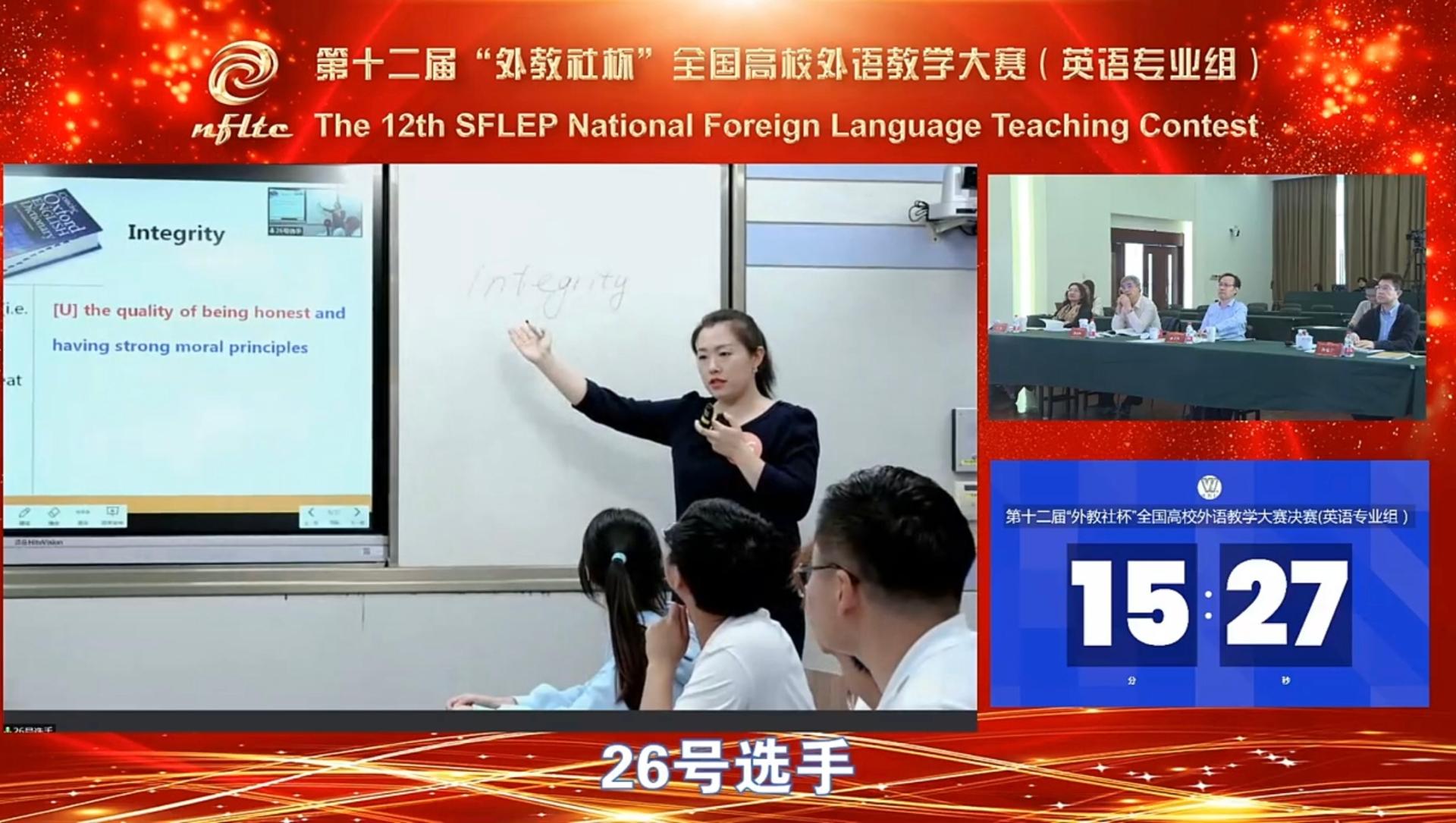 据悉,“外教社杯”全国高校外语教学大赛始创于2010年,是我国最早举办的全国性外语类教学大赛。大赛覆盖全国各省市共千余所高校,因其严谨、创新、公正、权威,获得了外语界的一致赞誉和教育主管部门的高度评价,在中国高等教育学会发布的《全国普通高校教师教学竞赛分析报告(2012-2020)》中,位列外语类教学比赛首位。(编辑 王俊芳 审稿 陈华文)