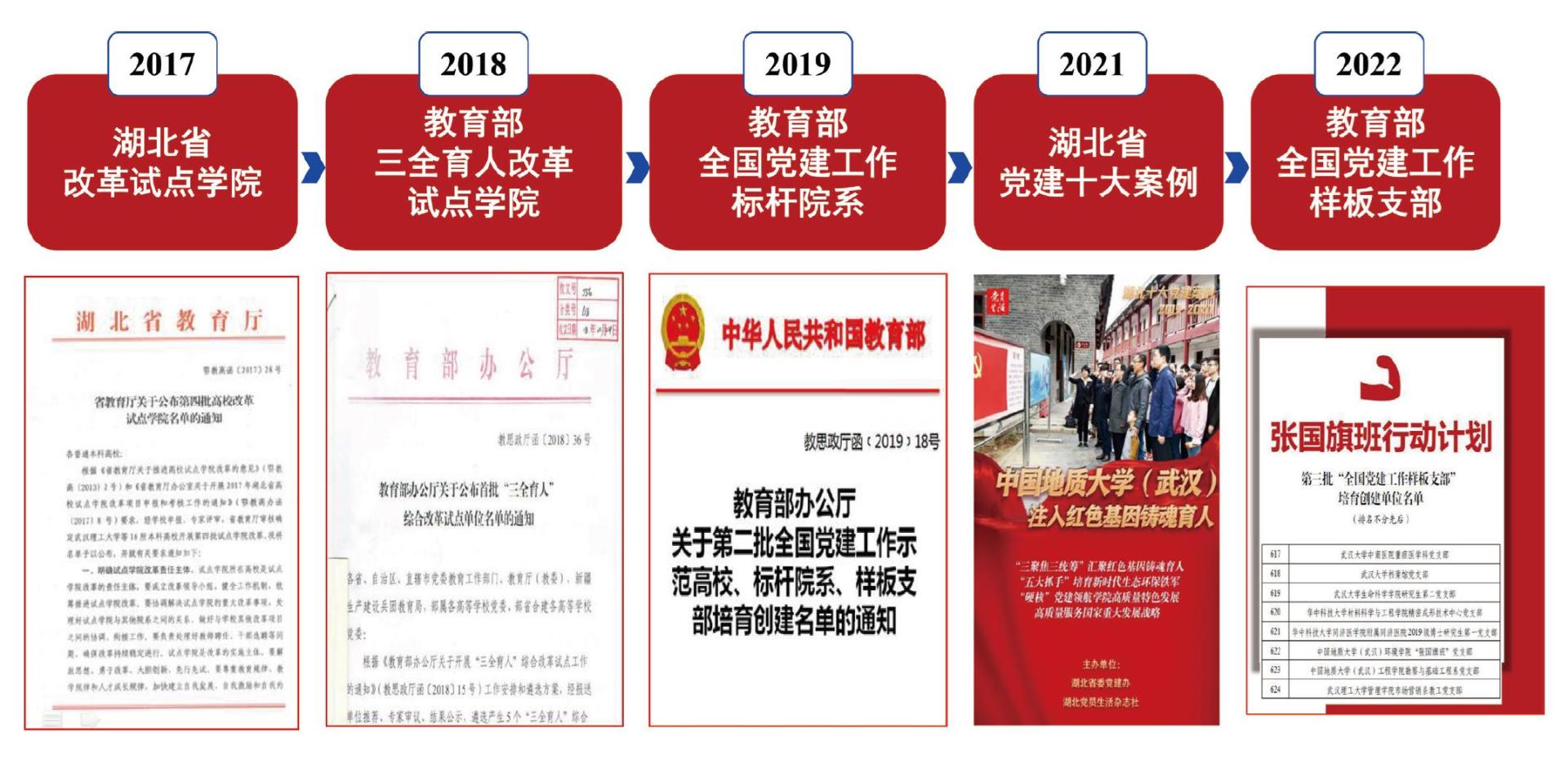 环境学院连续被学校评为“优秀”二级单位,先后被评为2017—2021学校文明教学科研单位、学校脱贫攻坚优秀组织单位。环境学院党委连续五年被评为学校先进基层党组织,涌现出了一大批师生先进典型,学院社会影响力和美誉度不断提高。近年来,教育部、省委等领导多次来环境学院调研。2022年5月,湖北省高校党建工作推进会定点考察学院,湖北省高工委专职副书记张幸平莅临指导;2021年12月,时任湖北省委常委、组织部长李荣灿来校调研专题听取学院工作汇报;2019年10月,教育部直属高校“不忘初心、牢记使命”主题教育第八巡回指导组组长黄健柏一行来学院调研指导;2018年12月,时任湖北省委常委、宣传部部长、高校工委书记王艳玲来学院调研党建思政工作,均给予高度评价和充分肯定。《人民日报》、中央电视台、新华网、《光明日报》《经济日报》《中国教育报》《中国自然资源报》《中国科学报》《中国青年报》《中国气象报》《湖北日报》、湖北卫视、武汉电视台等媒体对学院进行宣传报道。