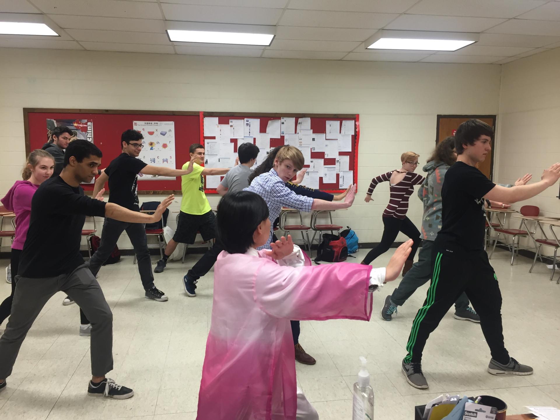 2016年,外国语学院教师在美国孔子学院讲解太极拳