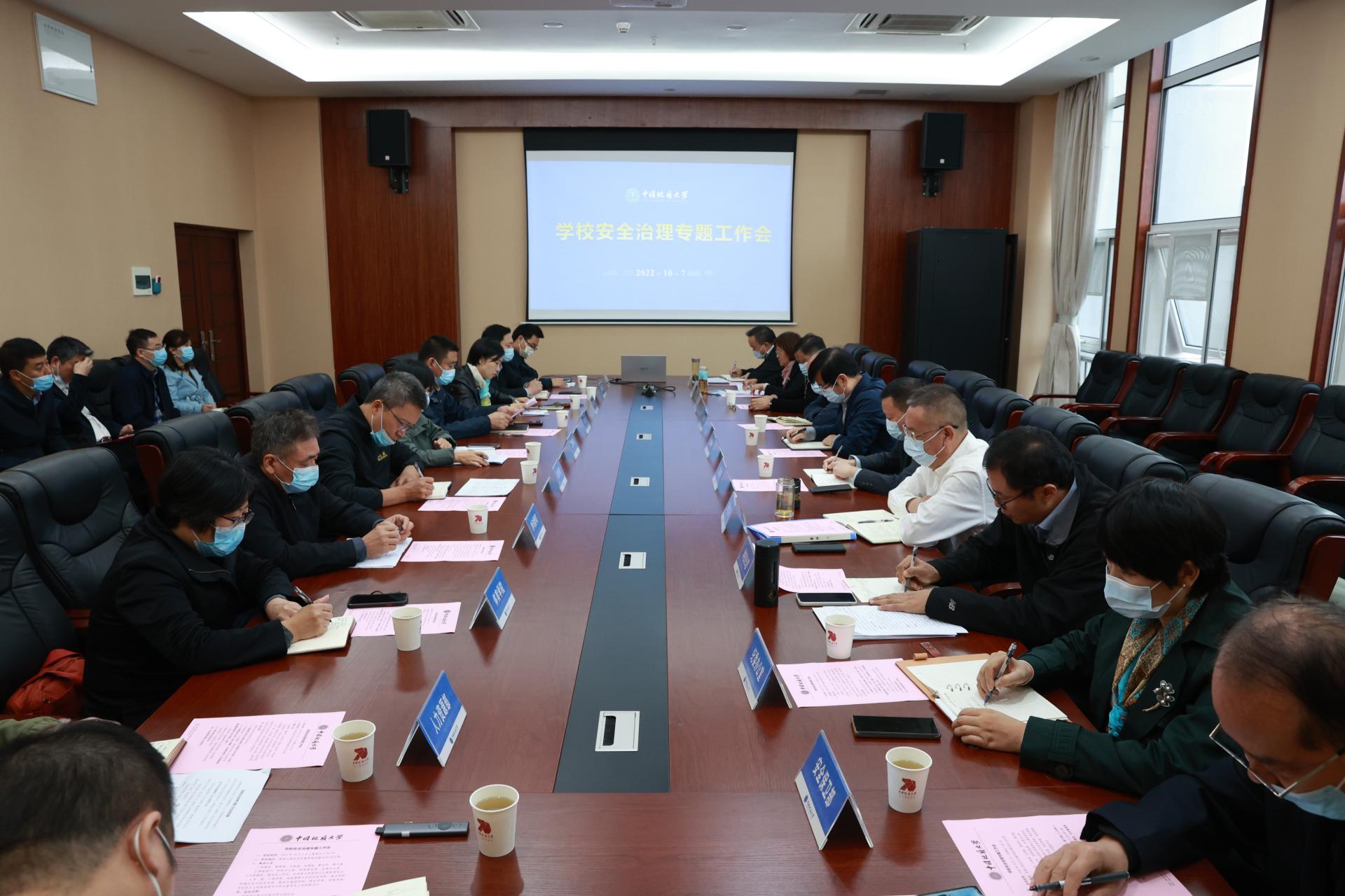 党委统战部、人力资源部、离退休工作处、安全保卫部负责人依次汇报了安全稳定工作情况。工程学院、地球物理与空间信息学院、海洋学院、机械与电子信息学院、数学与物理学院、珠宝学院、体育学院、马克思主义学院党委书记,依次汇报安全治理工作落实情况及整改举措。与会单位围绕学校安全稳定与综合治理的整改要点进行了讨论。