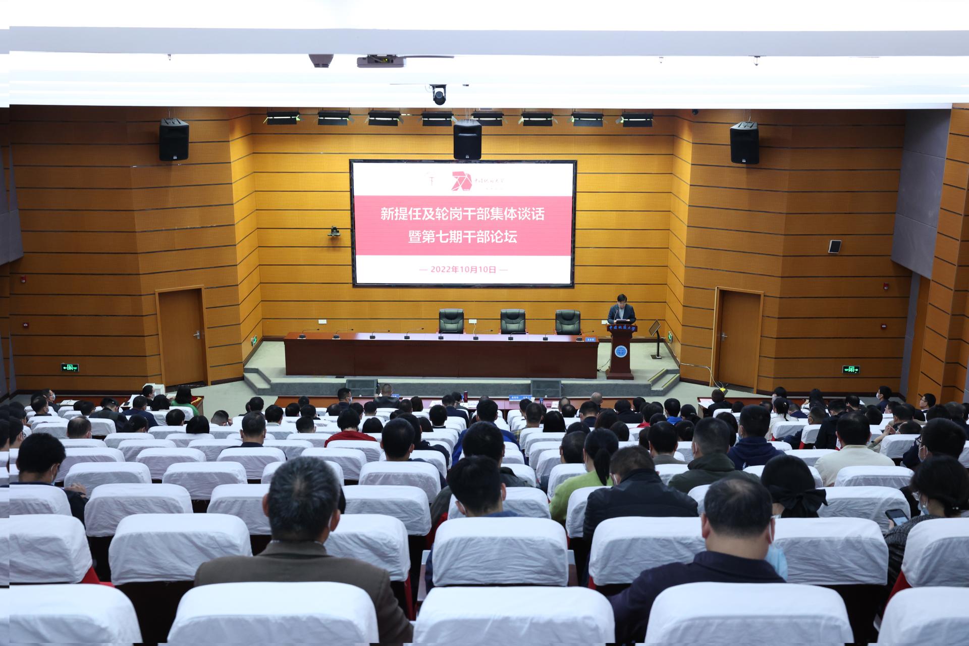 地大新闻网讯(通讯员 孙莉 宋超 晋曦 摄影 高雅)10月10日,新提任及轮岗交流中层干部集体谈话暨第七期干部论坛在南望山校区教学综合楼A0113举行。校党委书记黄晓玫,党委副书记唐辉明,党委副书记、纪委书记唐忠阳,2021年9月至今新提任、轮岗交流的中层干部,管理与服务单位全体中层干部,机关科级干部参加会议。