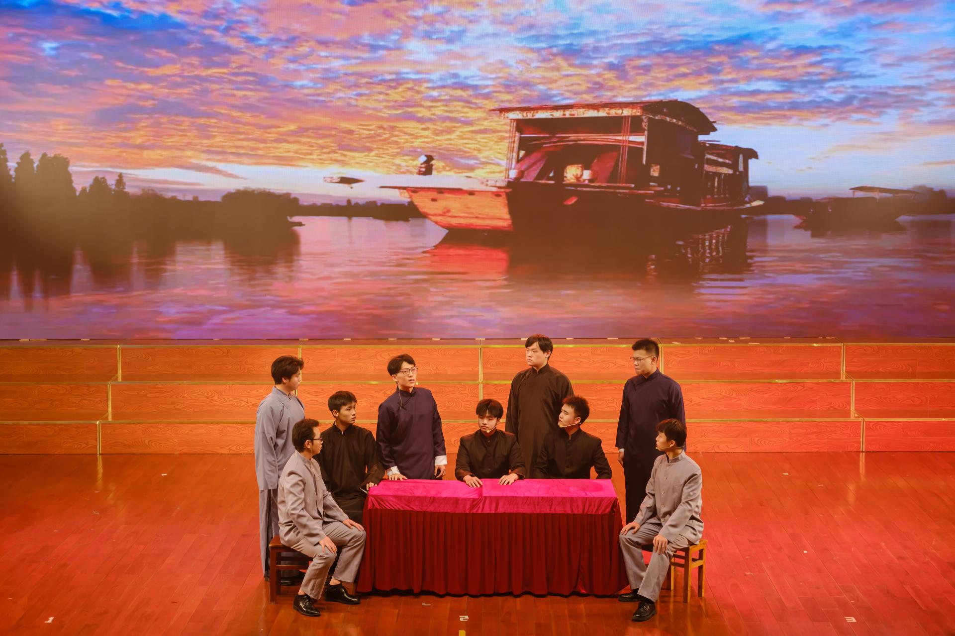 本次艺术党课分“开天辟地”“改天换地”“翻天覆地”“惊天动地”四个篇章,党委组织部部长陈文武、副部长冷再心,艺术与传媒学院党委书记郭秀蓉、党委副书记边建华、音乐系党支部书记周黎担任讲课人,以百年党史为经,以重大历史关头红色经典背景故事为纬,通过情景表演、合唱、舞蹈、器乐演奏、朗诵等多种艺术形式,呈现了党在百年征程中凝聚的红色精神和中国力量,激发广大师生在新时代奋进新征程。