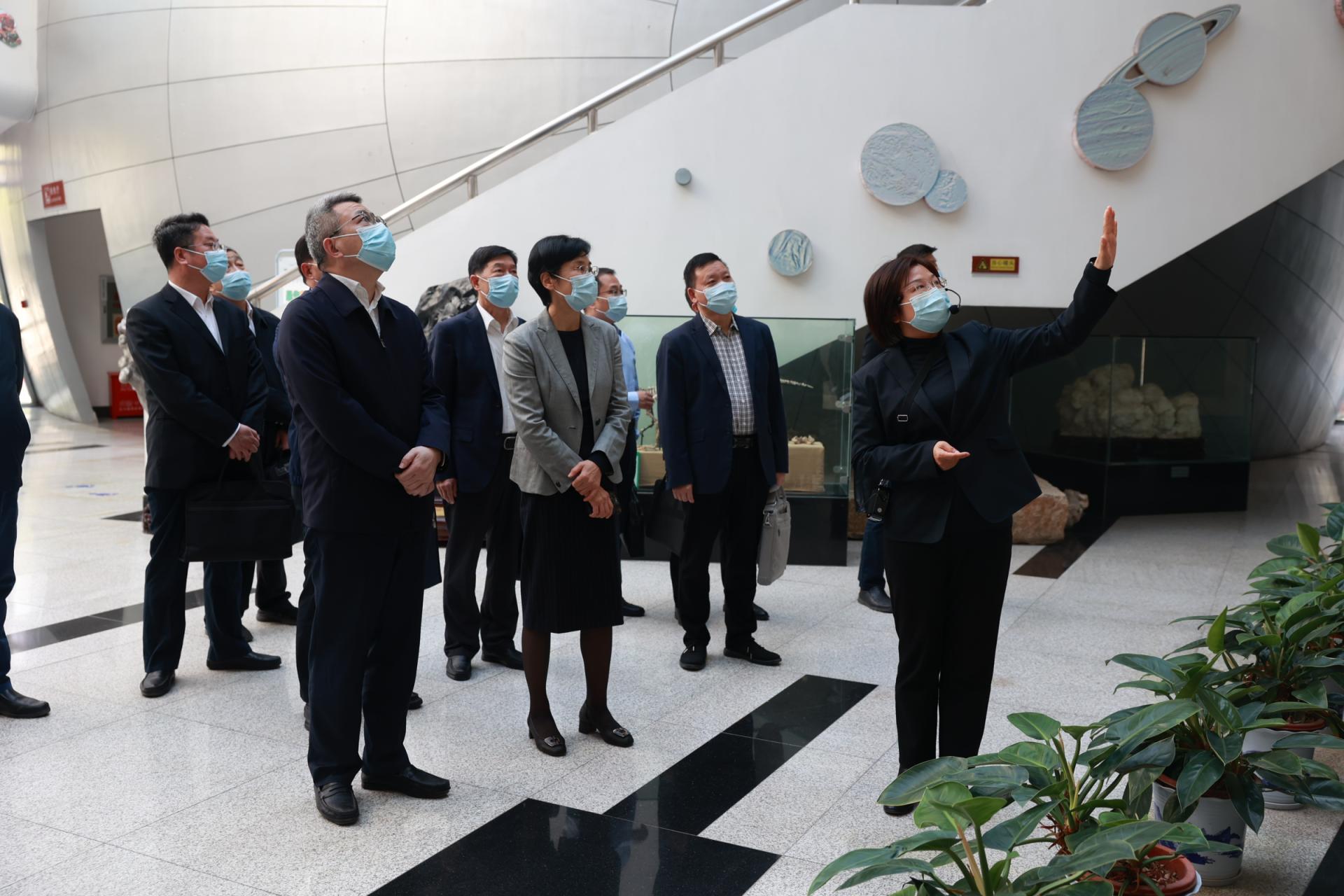 调研期间,胡道银一行先后参观了米兰逸夫博物馆中国特色矿物精品展、生命起源与进化展厅、珠宝玉石展厅、科普教室等。胡道银对米兰逸夫博物馆在科普教育、文化育人、美育启蒙等方面发挥的作用表示肯定,他称赞博物馆为科普教育提供了优质的平台。