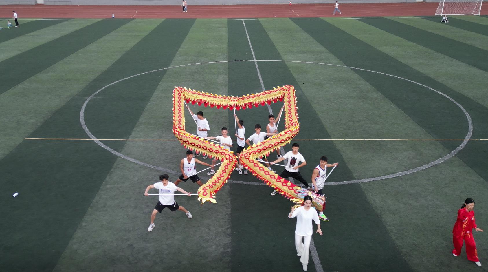 在体育学院胡凯老师的组织下,师生们组成“7”和“0”的队形,寓意校庆70周年。在《我爱祖国》的音乐声中,校武术队4名学生表演了自选剑项目。随后,40余名师生表演了八段锦、八法五步、24式太极拳,动作整齐,劲健柔美。校舞龙队的9名学生高举威武的“龙”,也加入到表演队伍中。金色的长龙盘旋飞舞,时而飞上天空,时而在地面盘旋。现场观看的同学们,赞口不绝。