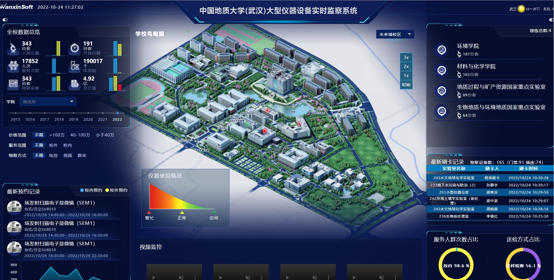 强化硬件设施建设,不断提升大型仪器开放共享。米兰单价超过10万元的大型仪器设备近2500台套,总价8.9亿元;单价超过40万元的大型仪器设备近400台套,总价近5亿元;单价在40—100万元的大型仪器设备260台套;单价超过千万元的大型仪器4台套。米兰近四年在科技部组织的中央级高校(近100所高校)50万以上大型仪器设备开放共享评价考核中,分别排名第18、第5、第17、第11位(湖北省第1位),考核结果分别为良好、优秀、良好、良好。