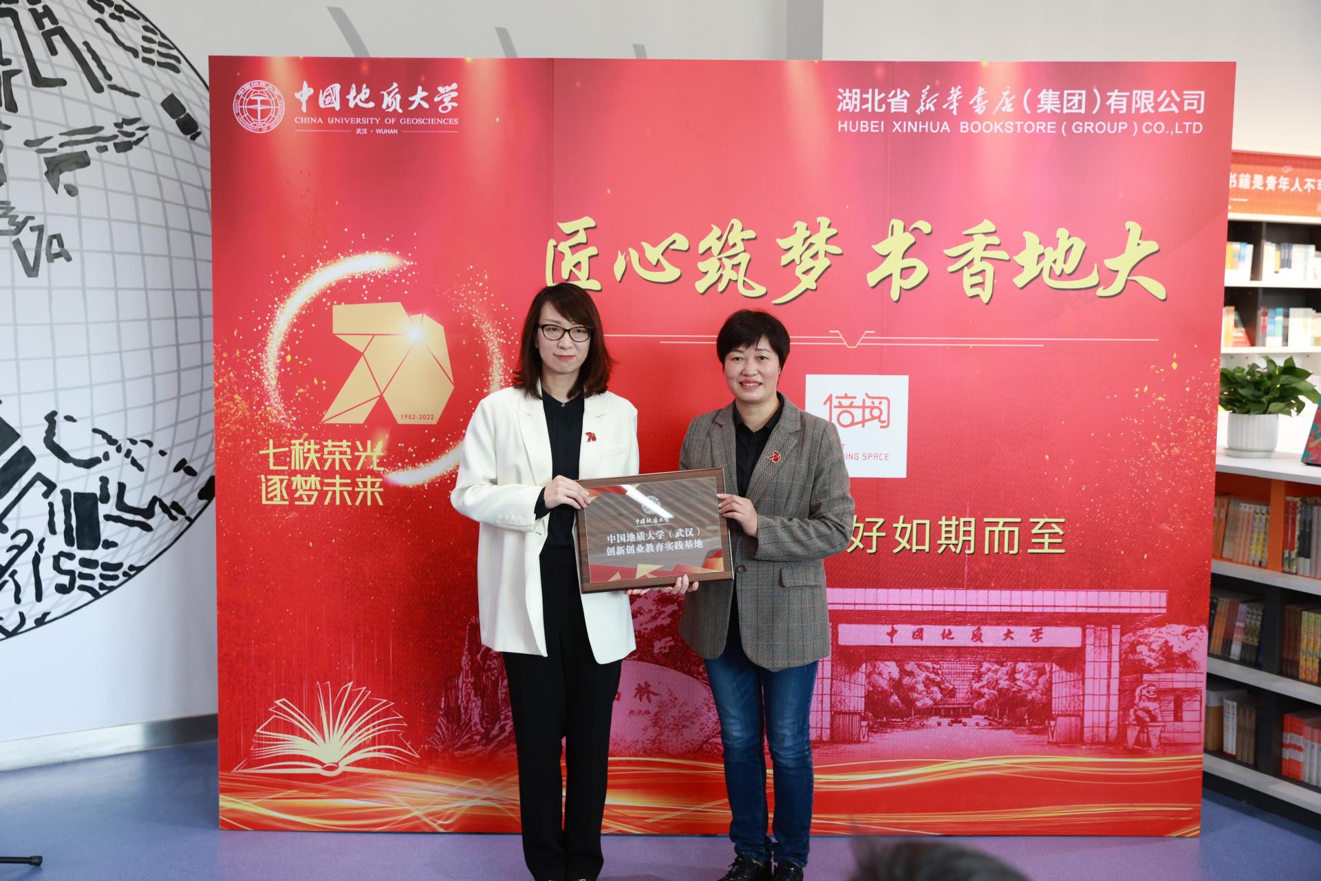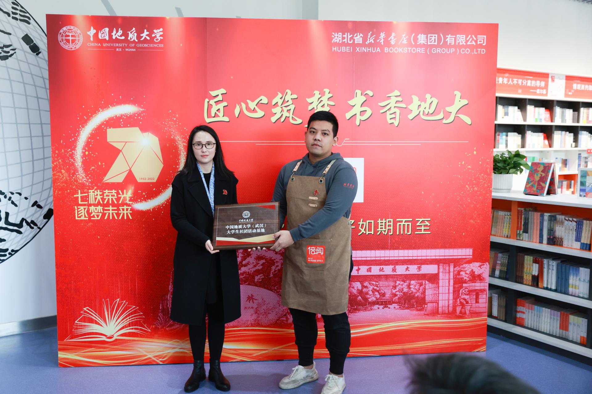 活动现场,本科生院副院长孟霞向倍阅·未来城书店授“米兰milan官方网站(武汉)创新创业教育实践基地”牌匾;团委书记朱荆萨向倍阅·未来城书店授“米兰milan官方网站(武汉)大学生社团活动基地”牌匾。