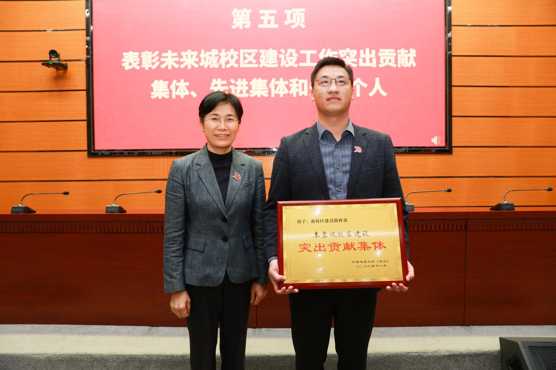 校党委书记黄晓玫为未来城校区建设工作突出贡献集体——新校区建设指挥部颁奖。