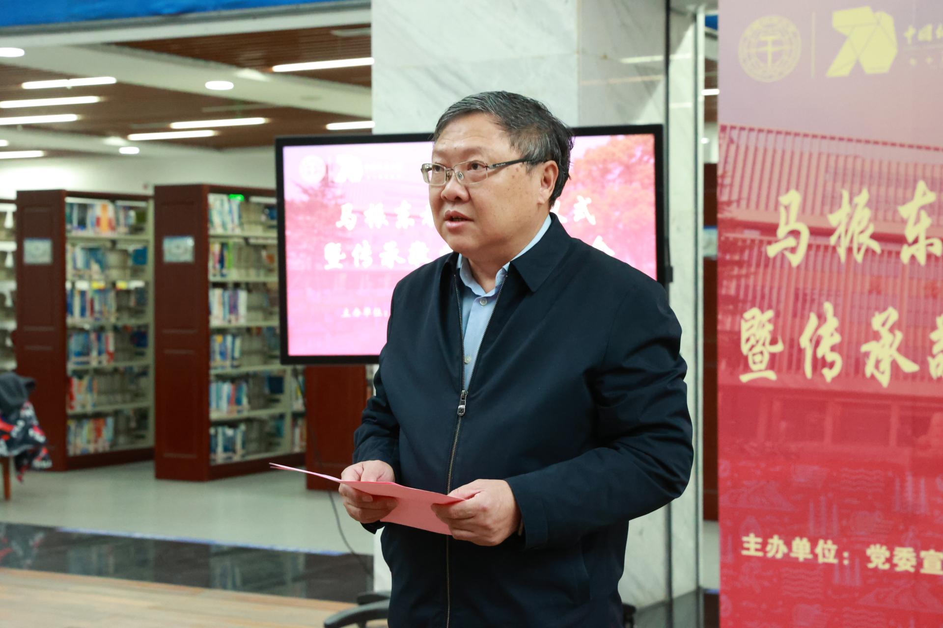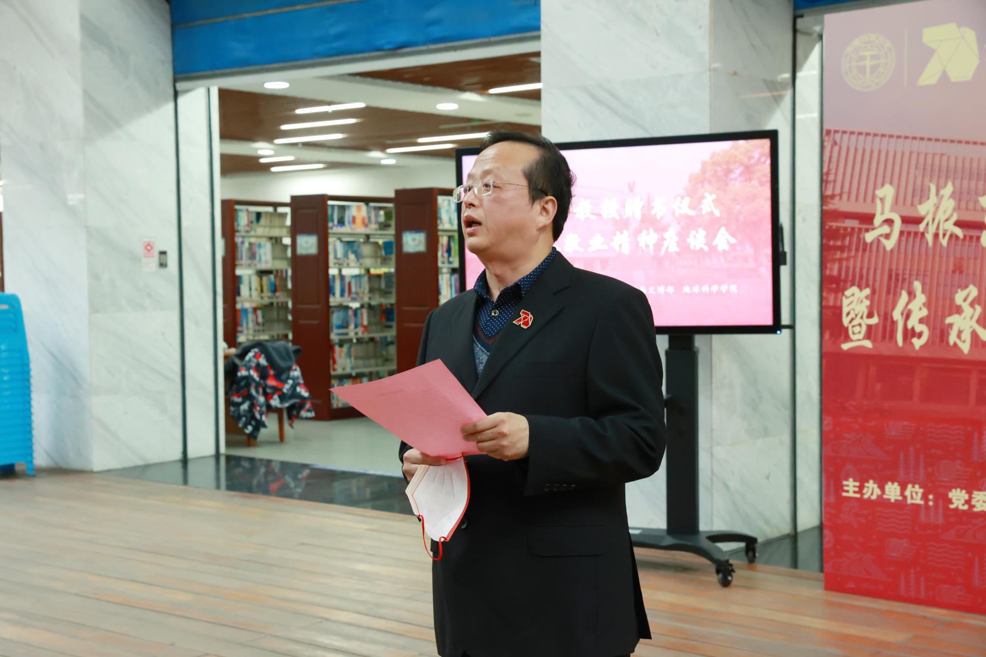 图书档案与文博部党委书记帅斌介绍了马振东教授教书育人的事迹。
