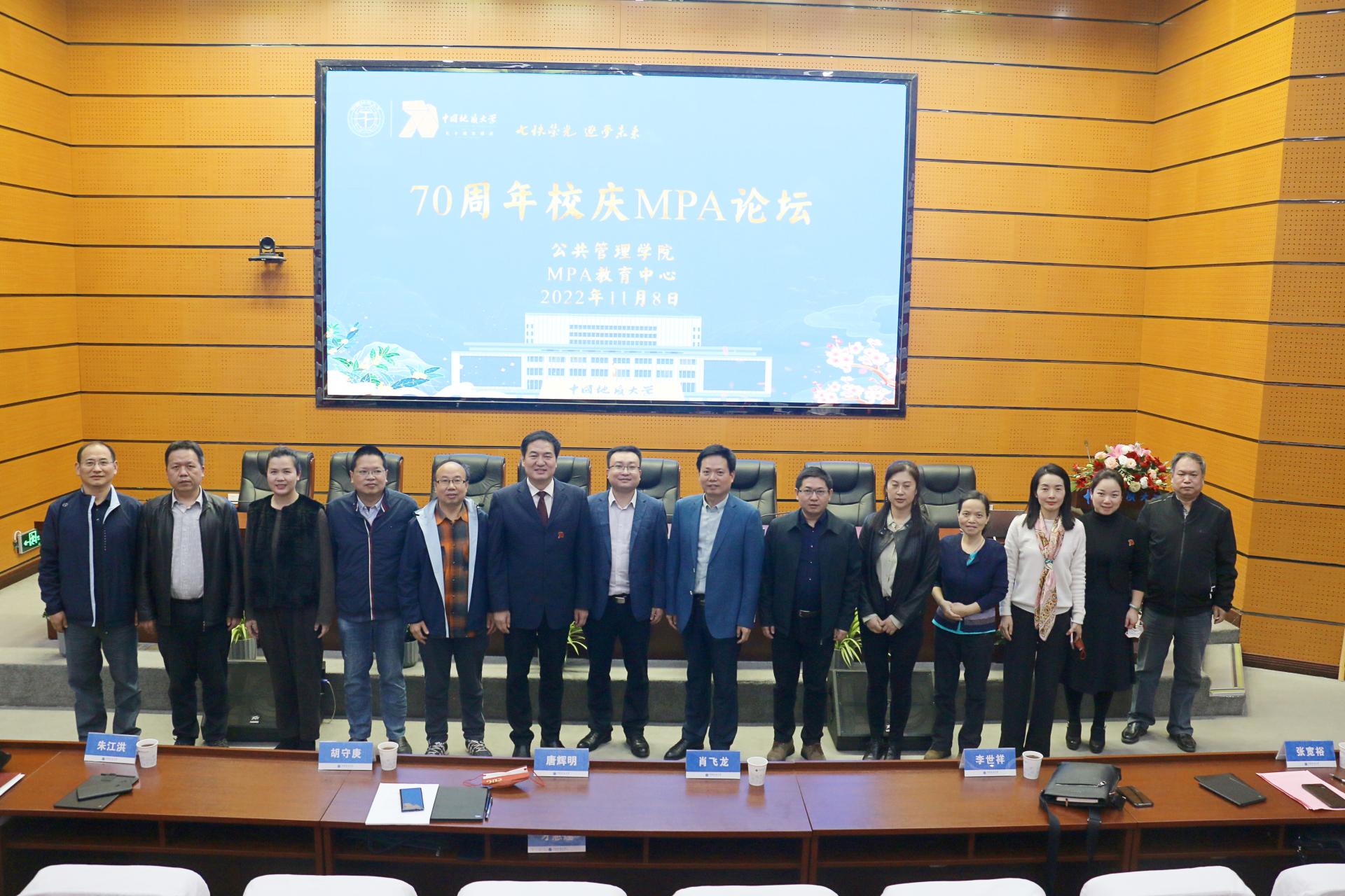 公共管理学院院长胡守庚教授作总结发言。他指出,此次MPA论坛旨在梳理过去15年来MPA办学经验,寻找目前存在的不足以及锚定未来的发展方向。他对与会的各位领导以及专家、老师、同学以及社会各界对公共管理学院、MPA发展给予的支持和帮助表示感谢。同时他结合学院MPA教育当前开展的工作,从国际交流、MPA与学校特色领域相结合等方面展望了未来发展。