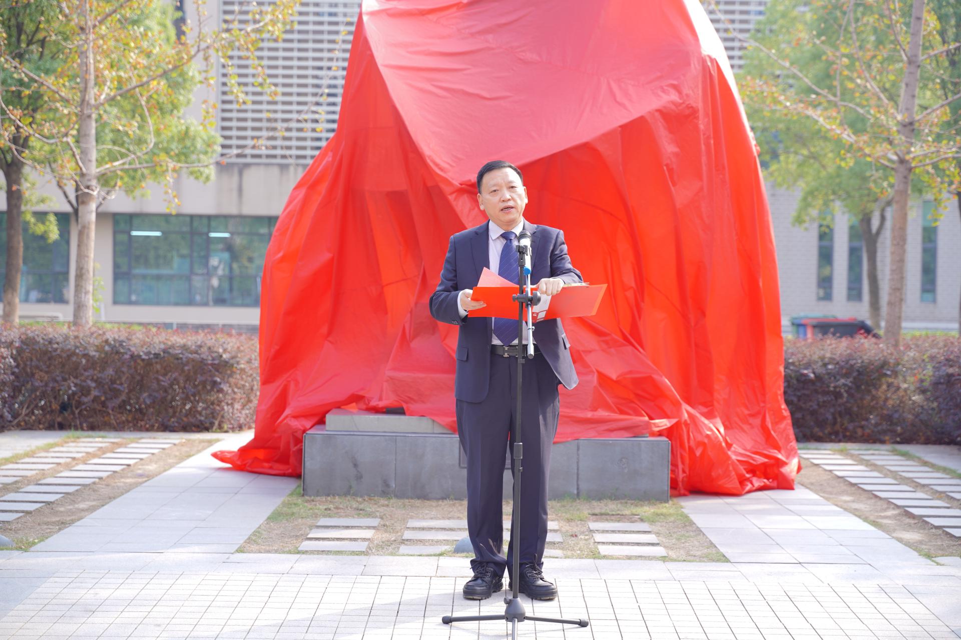 高文田致辞。他对《逐梦》雕塑的设计理念进行了介绍,他表示,新大正将全面助力“三化三型”校园建设,与学校共同开创高校物业管理服务新模式,打造高校物业服务新名片,携力共创“地球科学领域世界一流大学”。