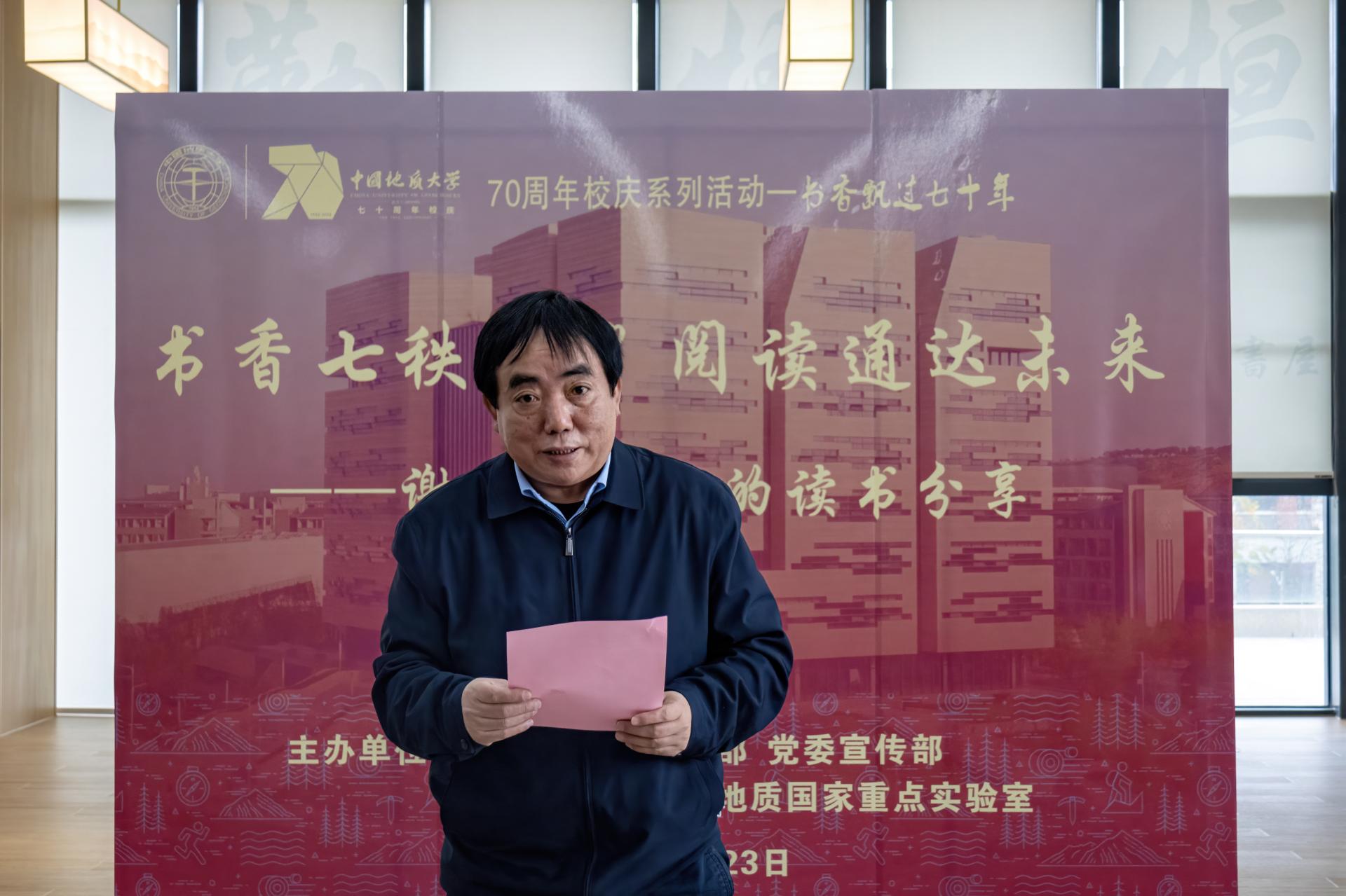 赖旭龙讲话。他说,党的二十大报告对“推进文化自信自强,铸就社会主义文化新辉煌”作出了重要部署。学校始终把书香校园建设作为文化建设的重头戏,把特色大学文化作为“双一流”建设的重要支撑。第六届书香文化节的开展,巩固拓展了党史学习教育成果,促进师生不断汲取历史智慧,拓展全球视野,发挥了大学的文化育人功能。他希望,图书档案与文博部持续推进全民阅读,让书香氤氲地大的每个角落,凝聚力量、振奋精神、奋发向上,助力全国文明校园建设,为学校发展提供强大精神动力。