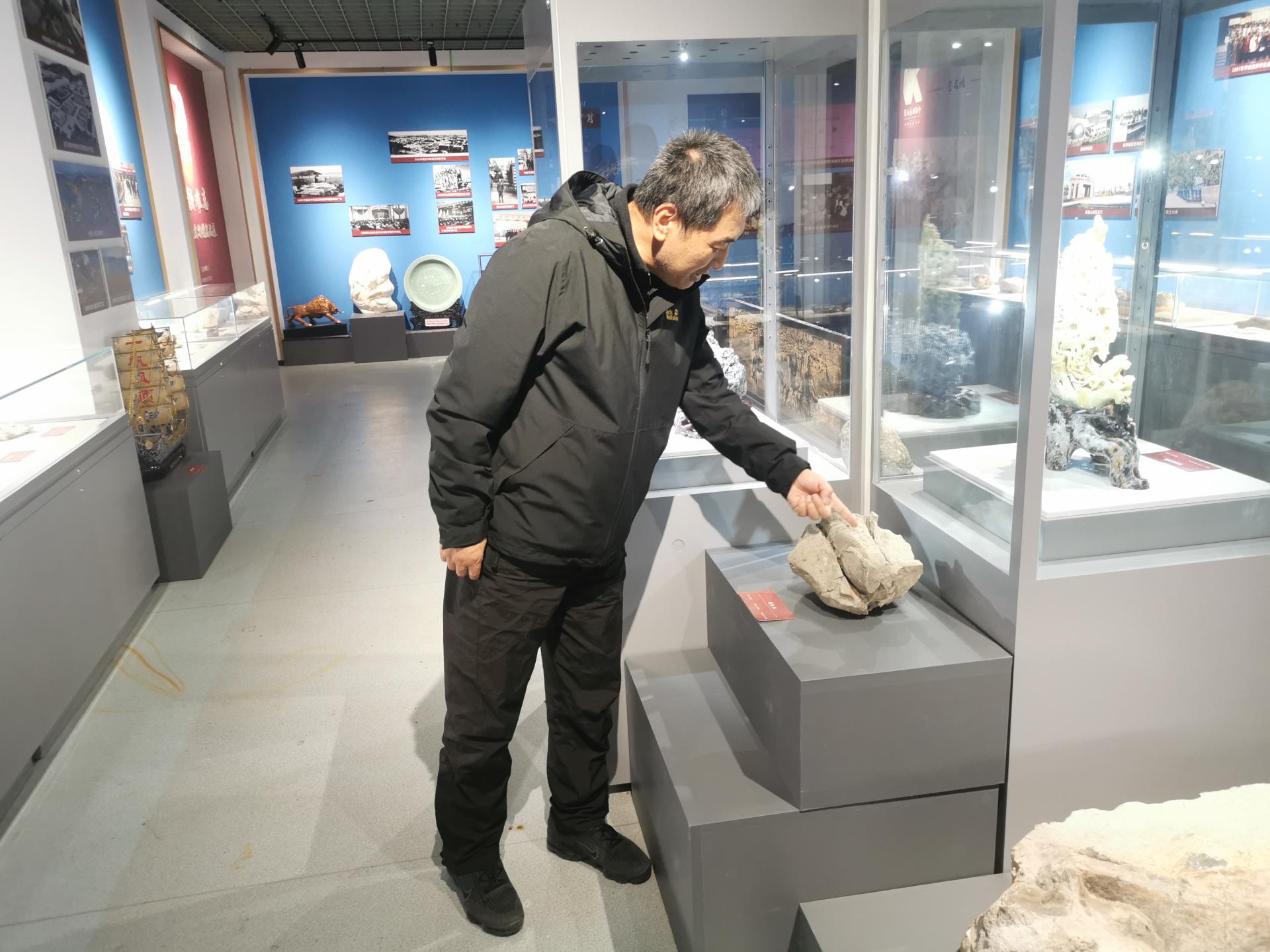 焦养泉教授在“校友捐赠藏品展”讲述钙化木的发现过程 徐燕 摄