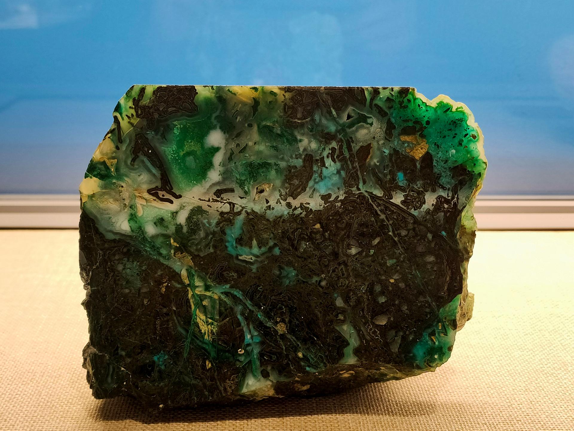丝光沸石、自然铜、硅孔雀石、巨晶沸石、针沸石、赤铁矿富铁矿石……在“校友捐赠藏品展”现场,数件来自海外校友捐赠的标本令人好奇。