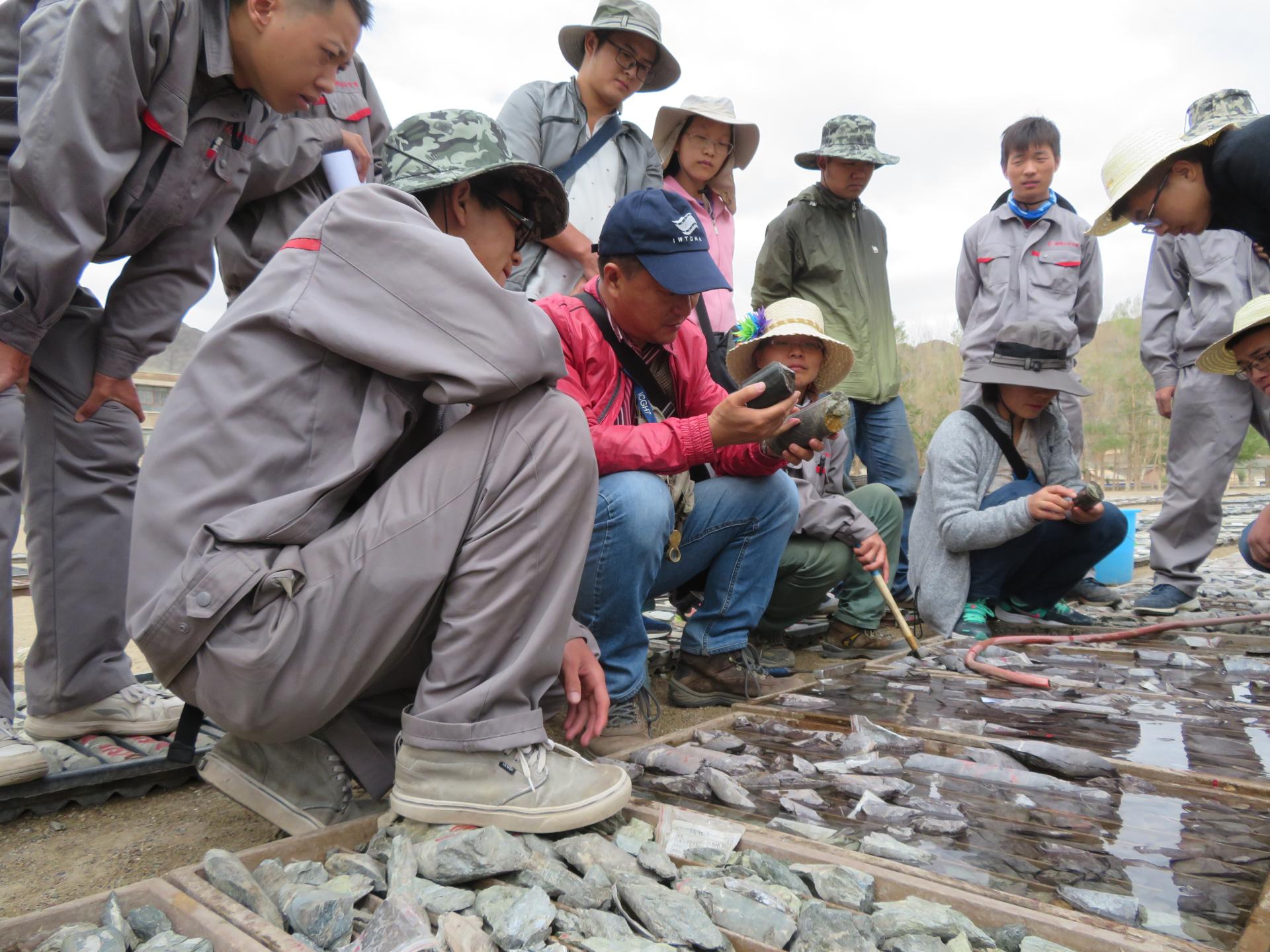 蒋少涌与团队成员在观察岩芯样品