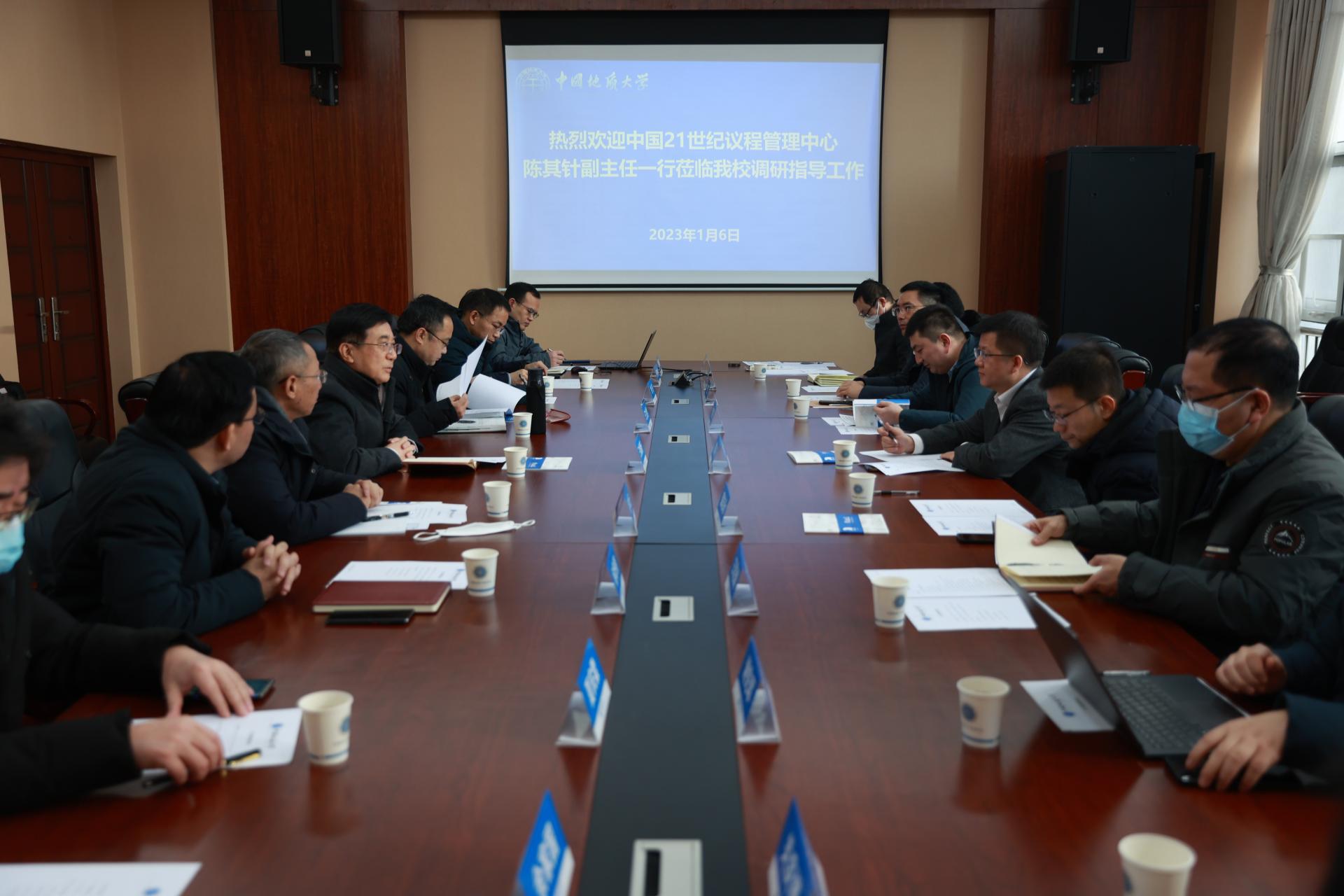 王焰新欢迎陈其针一行来校调研,并从学校历史沿革、学科特色、办学情况、学校承担重点研发计划情况等方面做了介绍。他表示,学校发展进入关键时期,感谢科技部及中国21世纪议程管理中心对学校的支持。
