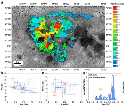 地大新闻网讯(通讯员 殷茵)年轻月海玄武岩是月球近期(30亿年以来)火山活动的产物,蕴含月球晚期热演化及月球如何逐步走向死寂的奥秘。我国嫦娥三号对雨海北部的年轻玄武岩单元进行了探测,而嫦娥五号更是直接从风暴洋北部地区采集到了距今20亿年左右形成的玄武岩样品,为认识月球晚期火山活动提供了可能。