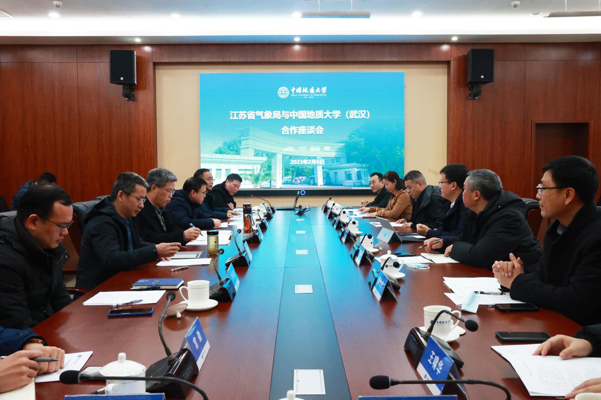 地大新闻网讯(通讯员 马洪福 摄影 孙彦钦)近日,江苏省气象局副局长唐红昇一行来校会商合作事项,湖北省气象局副局长金琪、米兰副校长王华,相关单位主要负责人和有关专家参加会议。