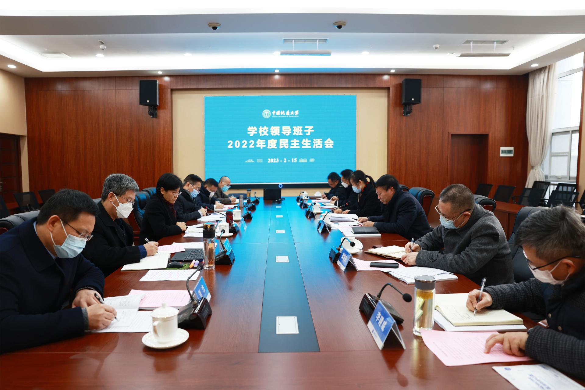 地大新闻网讯(通讯员 冷再心 王珩 摄影 孙彦钦)2月15日上午,学校领导班子在南望山校区东区教学综合楼A701会议室召开2022年度民主生活会,教育部督导组组长、教育部高校党建工作联络员谢守成、督导组成员黄玉新到会指导。校党委书记黄晓玫主持会议。