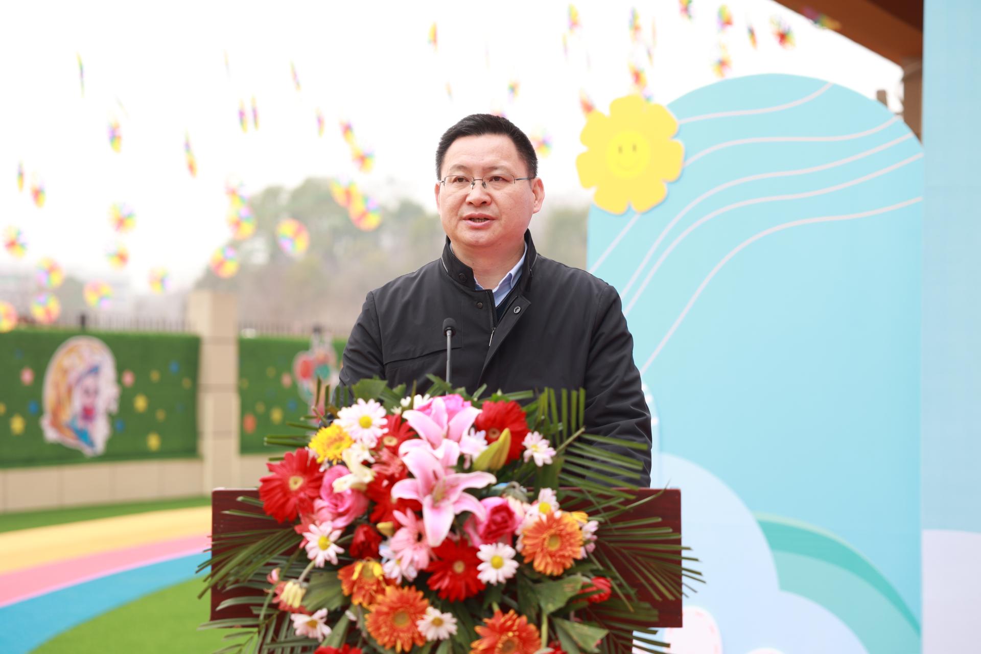 刘杰代表学校对东湖高新区教育局、左岭街及学校教职工和有关部门表示感谢。他希望,附属未来城幼儿园在今后的办学过程中,始终把握正确办园方向,落实立德树人根本任务,用习近平新时代中国特色社会主义思想培根铸魂,启智润心;加强师德师风建设,努力造就家长满意、社会好评的高质量教师队伍。