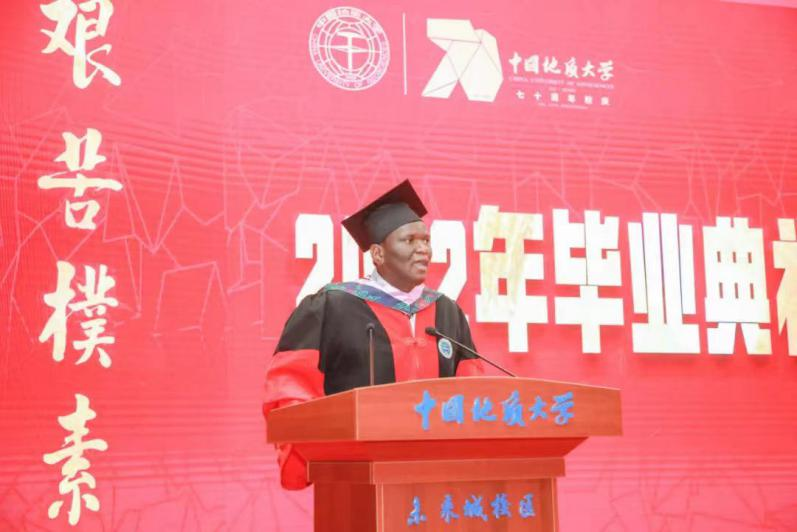 大明作为国际学生代表在学校2022年毕业典礼上发言