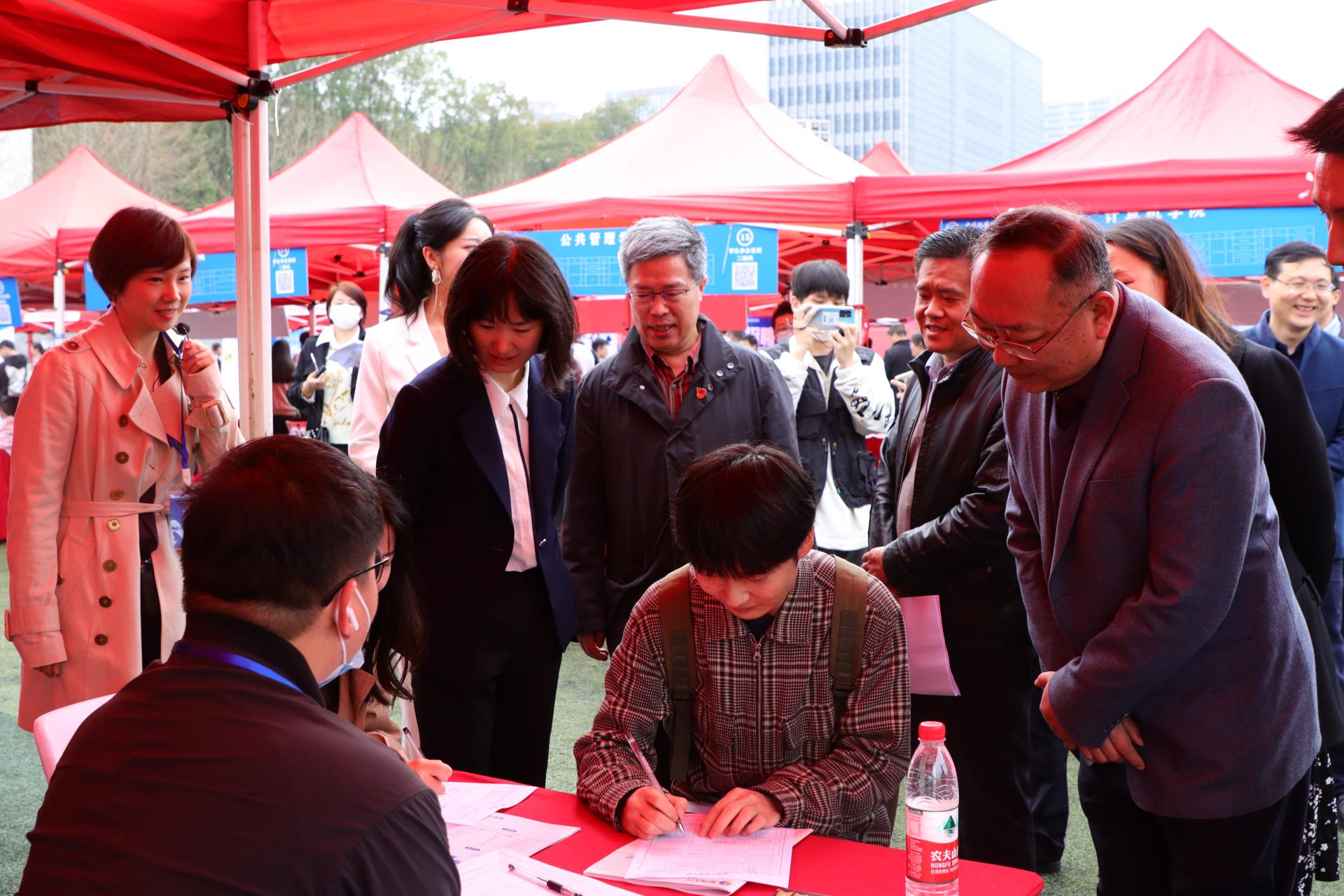 地大新闻网讯 (通讯员 刘志兴 彭鑫 郭玉凤 摄影 刘庆)为抢抓春招关键期,进一步落实春季促就业攻坚行动工作,全力促进2023届毕业生顺利就业、尽早就业,3月11日,米兰携手洪山区政府举办2023年大学之城就业节启动仪式暨米兰milan官方网站(武汉)校园专场招聘会,洪山区委常委、组织部部长刘华珍,区人大常委会副主任吕明新,副区长张俊峰,米兰副校长王华,相关部门、学院负责人及师生参加活动。