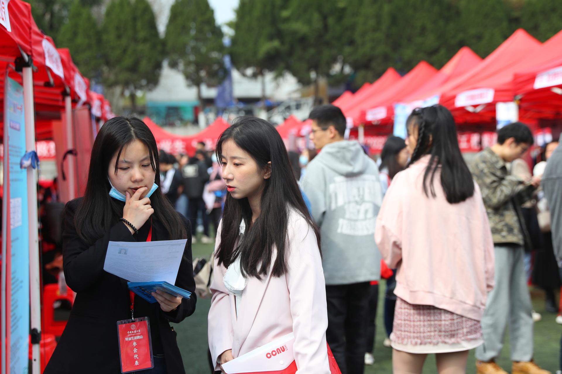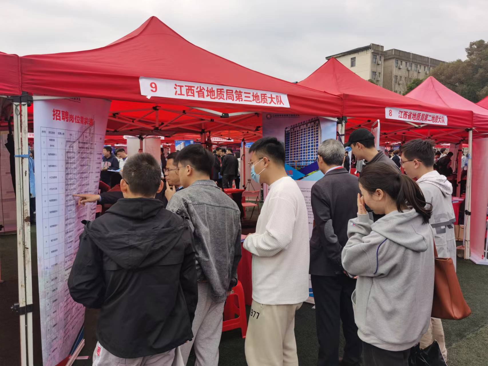 “工作具体内容是什么?”“有哪些薪资待遇?”招聘现场人头攒动,人声鼎沸,多个企业展位前都排起了长队,超3000名大学生前来求职。会场设有现场招聘、直播带岗、咨询服务三大区域,邀请了近400家企事业单位设展招才,提供就业岗位超2万个,涵盖自然资源、智能建造、大健康等众多领域;其中来自江西、湖北、广西、浙江、甘肃、重庆、四川、河南、陕西、内蒙古等12个省、直辖市,共计84家地勘单位来校招聘,包括江西省地质局23家单位、湖北省地质局7家组团参会,有效对接学校在地球科学、环境生态学、材料科学、化学等领域学科和人才优势。