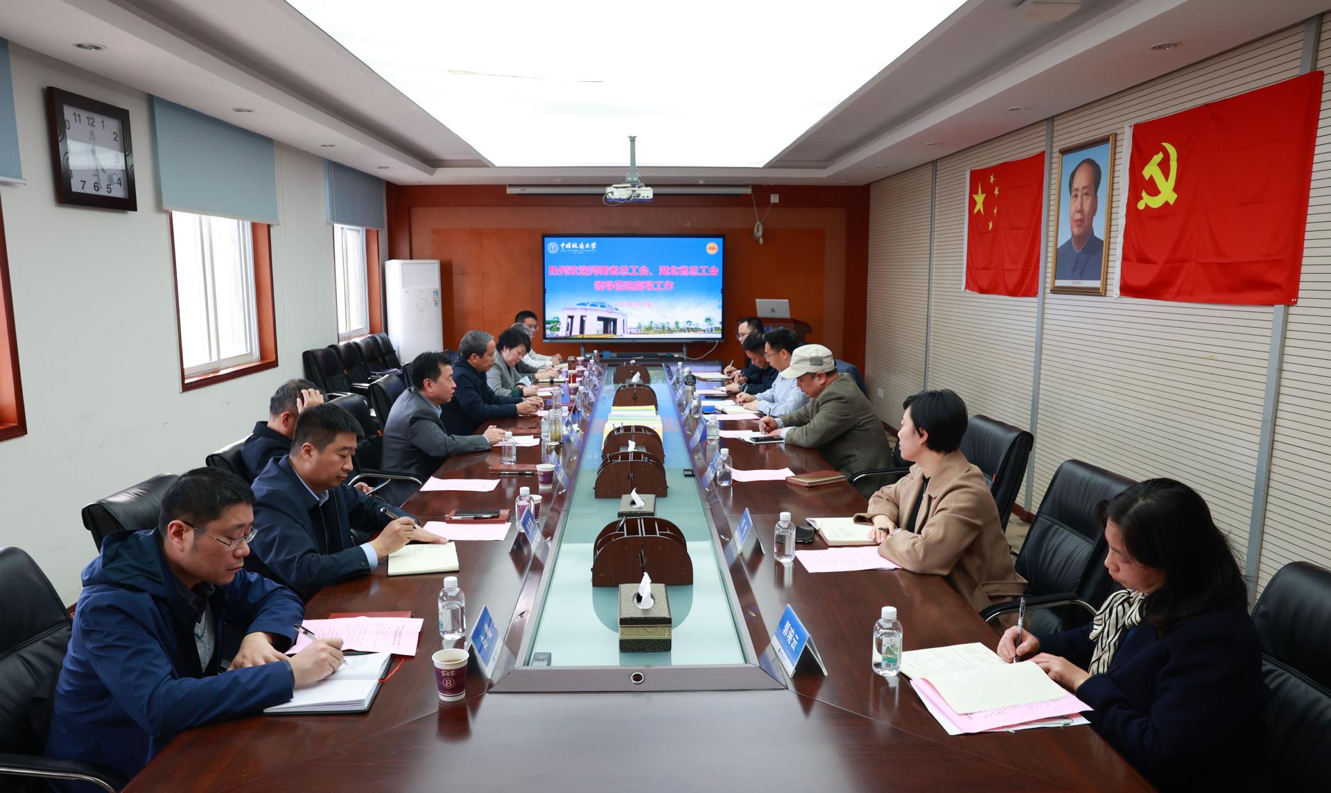 地大新闻网讯(记者 赵婧萱 通讯员 李梦琳 周斐霏)3月14日,河南省总工会、湖北省总工会领导来校调研,并就米兰教代会建设情况进行座谈交流。校党委副书记、工会主席王甫,工会常务副主席喻芒清,工会副主席杨世清等参加座谈。喻芒清主持座谈会。