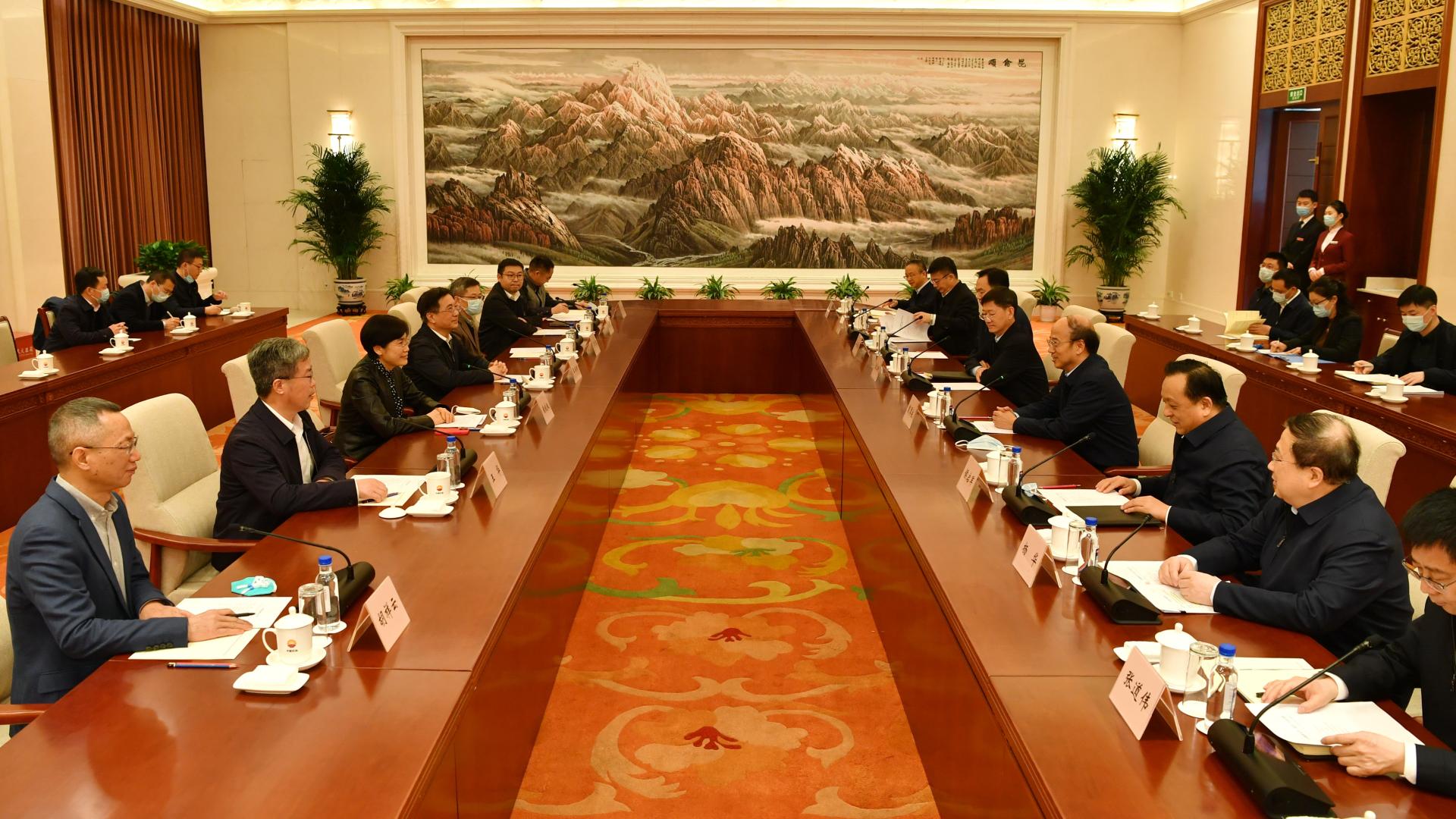 协议签署前,戴厚良、侯启军与黄晓玫、王焰新一行进行座谈,双方就全面深化合作交换了意见。