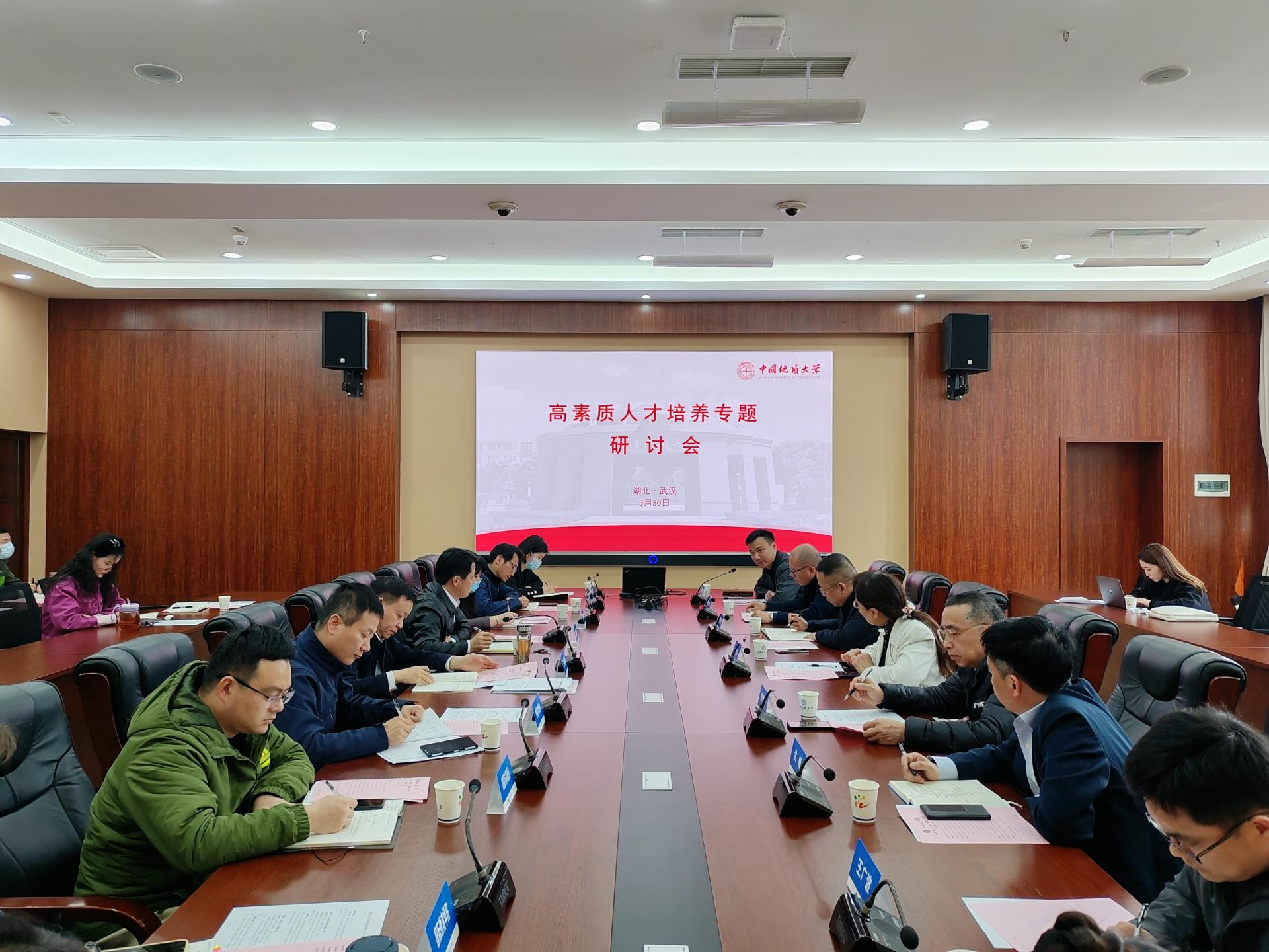 校内座谈会上,各培养单位从学校事业高质量发展中存在的问题、学校对接国家重大战略和区域经济建设发展应如何作为的角度出发,介绍了学院在高素质人才培养中的经验做法、面临问题和应对举措。地球物理与空间信息学院副院长陈丽霞认为要充分发挥教师在高素质人才培养中的作用,加大政策支持和培训力度,提升教师的执教能力。工程学院副院长章广成提出深化“本—硕—博”贯通培养机制,加强引导,吸引更多优秀的学生提早进入导师团队,实现贯通培养。经济管理学院副院长肖建忠认为在新文科建设背景下,专业要紧密结合信息技术进行迭代升级,同时建设一批具有“高阶性、创新性、挑战度”的金课,作为人才培养的有力支撑。公共管理学院副院长王忠提出建立跨学科的本科生导学团队,升级校外产学研联合培养基地,增强学生的知广度、实践能力和综合素养。地球科学学院院长章军锋从本科生和研究生培养两个维度介绍了地学院的经验做法和工作思考,他认为要创新人才培养模式,多维度、多平台进行分类培养和管理,培养德才兼备的领军型高素质人才;要从教师、学生、课程、团队、教学基层组织等各人才培养要素来思考制度建设和激励措施。机械与电子信息学院副院长李波介绍了学院实习基地建设、竞赛品牌打造和校企联合培养的相关工作,提出应当鼓励教师承担企业课题,在企业挂职锻炼,提升育人能力。珠宝学院副院长张荣红探讨了学科调整与师资配备对本科人才培养的影响。马克思主义学院副院长陈军认为应当从国家需求、校本特色和民族复兴使命三个方面来思考高素质人才培养模式,他提出建立人才成长的跟踪反馈机制,从学生发展路径来思考如何科学制定培养方案。计算机学院副院长陈云亮介绍了学院课程对标建设工作和校企联合培养工作情况,建议学校通过资源分配激发教师干事创业的动力。