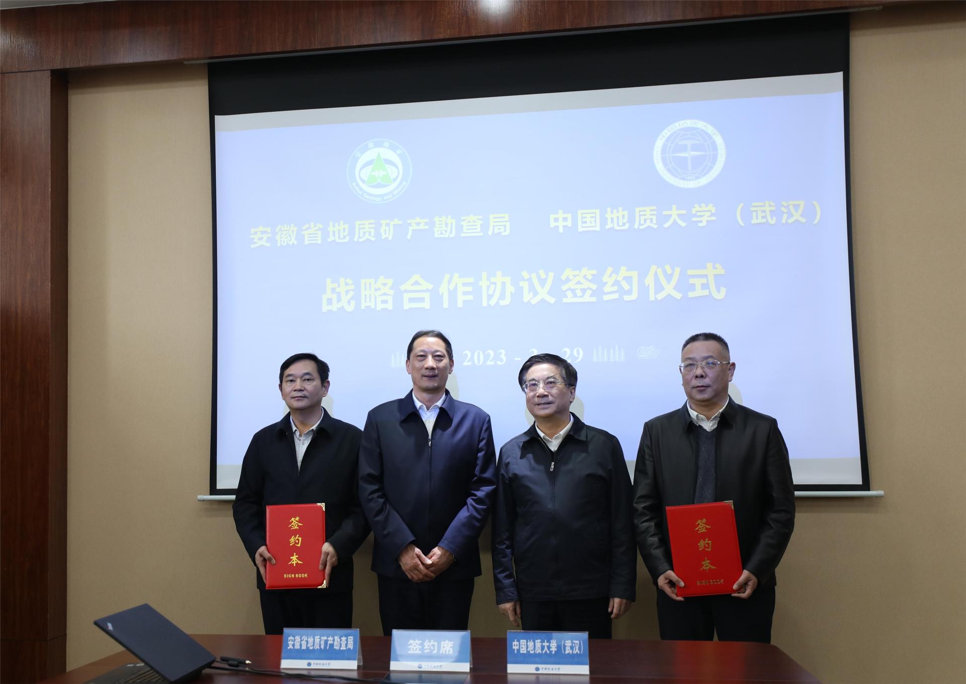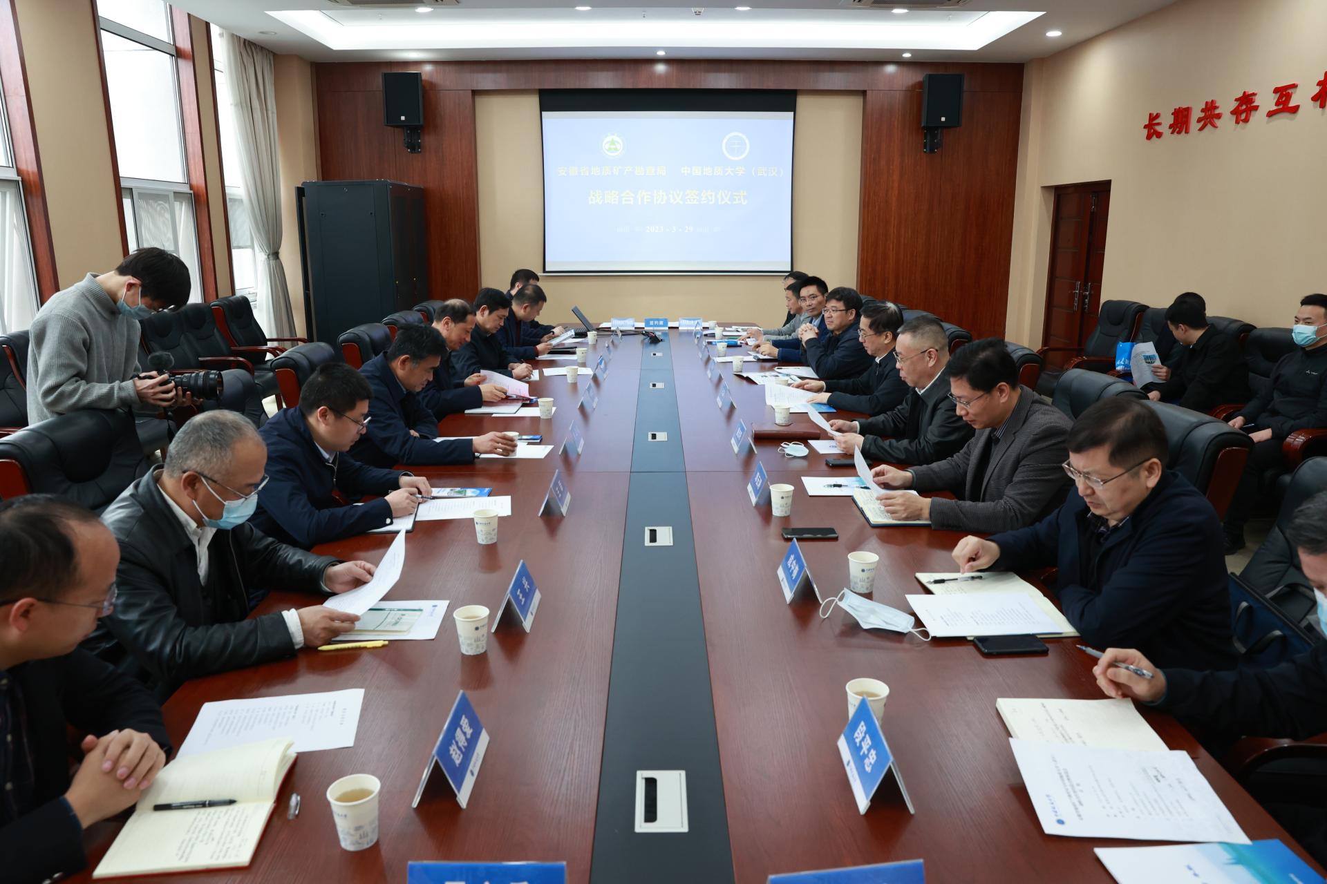 地大新闻网讯(通讯员 张鑫 摄影 赵婧萱 樊丛蓉)3月29日,米兰与安徽省地质矿产勘查局(以下简称“安徽地矿局”)签署战略合作协议。安徽地矿局党委书记、局长朱学文,党委委员、副局长叶朝晖,安徽工业经济职业技术学院院长许卫,米兰校长王焰新院士,党委副书记、纪委书记唐忠阳,双方相关单位负责人参加签约仪式和合作座谈会。唐忠阳主持会议。