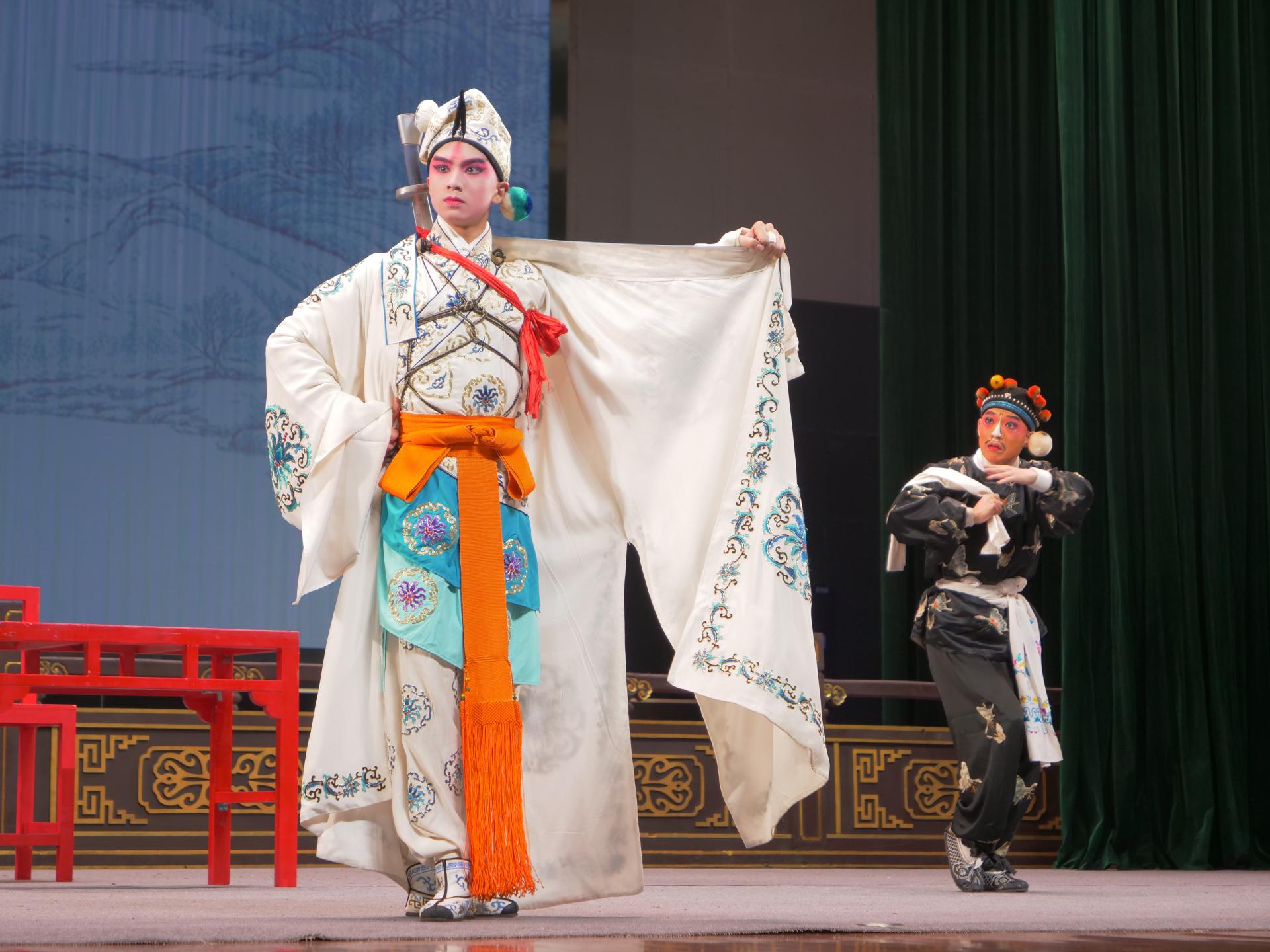 伴随着铿锵有力的锣鼓声和现场师生的阵阵喝彩声,《三岔口》《秋江》《打饼游街》《推车赶会》等经典戏曲片段一一上演。演员们身着华美戏服,从唱腔、身段、念白,再到一招一式,均展现出不俗的表演功力。现场气氛热烈,高潮迭起,掌声不断。