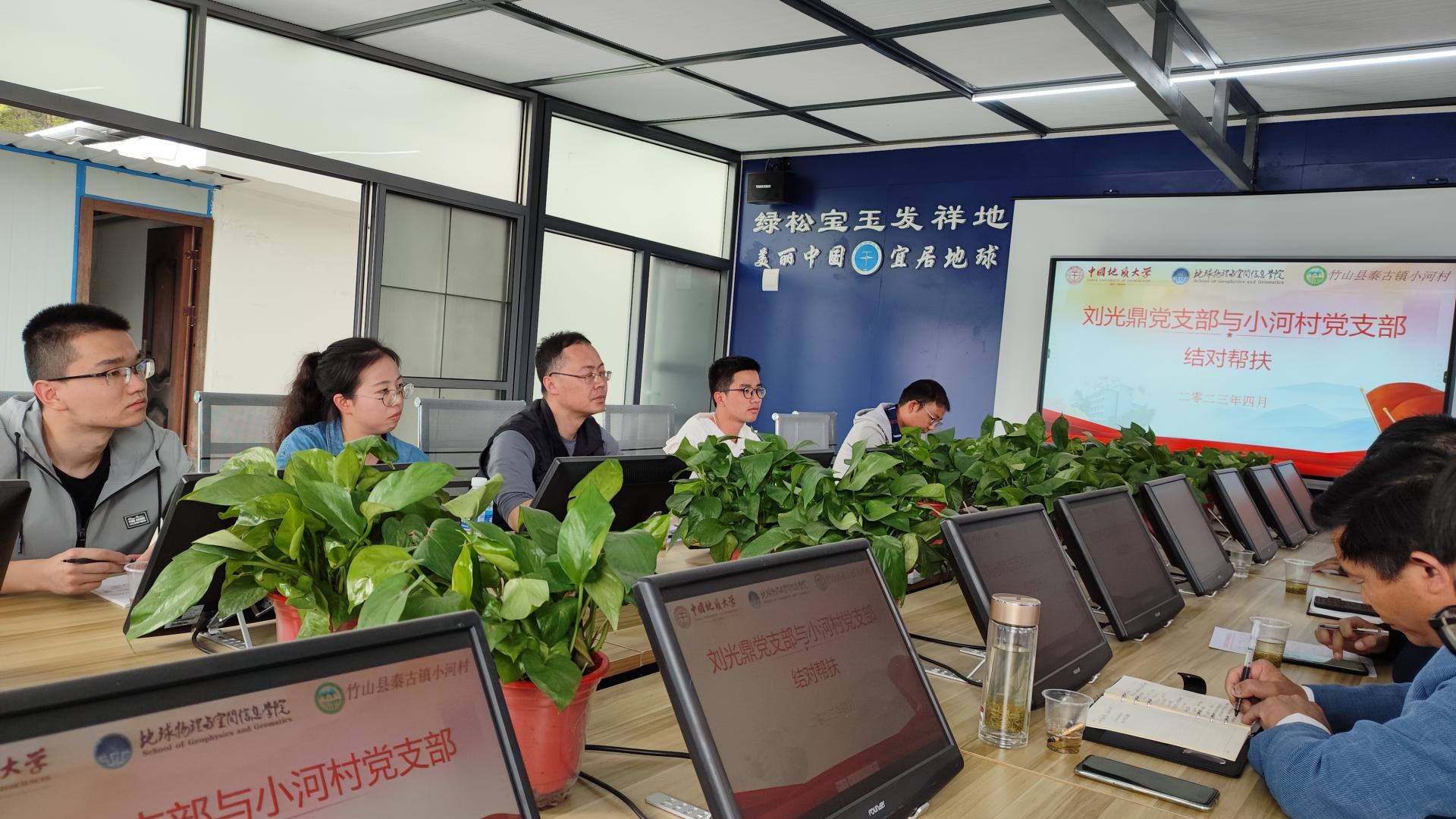4月14日,刘光鼎党支部代表抵达竹山县小河村村委会,与小河村党支部交流座谈,共商党支部结对共建事宜。小河村党支部书记陶定国介绍了小河村情况以及在乡村振兴进程中的薄弱环节。刘光鼎党支部书记翟基辉介绍了刘光鼎党支部党员构成及支部特色。双方就小河村建设发展需求进行深入沟通交流,在党支部建设、数字乡村、文化教育和文化地质灾害科普宣传等方面达成结对帮扶共识。刘光鼎党支部表示,今后会加强与小河村党支部的交流联动,发挥党支部的人才智力优势,开展教育帮扶、科技帮扶和文化帮扶,支持小河村图书室建设,满足村民日益增长的精神文化需求,助力小河村乡村振兴、高质量发展。