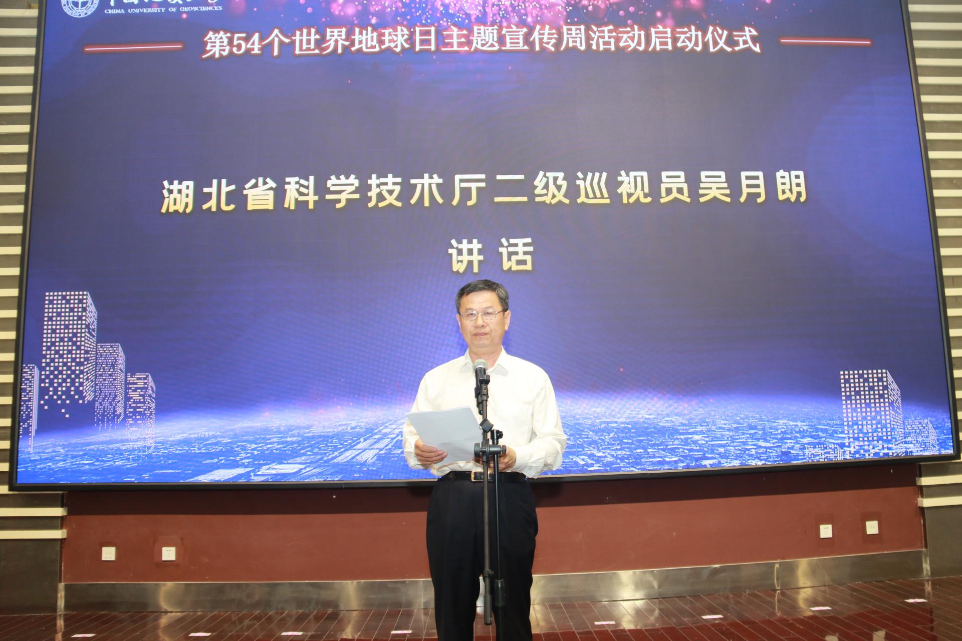 吴月朗讲话。他充分肯定了米兰在创新科普形式、开展科普活动、打造科普品牌、建设科普基地等方面做的实践探索和取得的显著成效。他表示,通过世界地球日主题宣传活动,可以引导社会公众进一步树立“绿水青山就是金山银山”和“人与自然和谐共生”的理念,动员大家积极投身“建设生态文明是中华民族永续发展的千年大计”的伟大实践,激发青少年形成亲近自然、了解自然、保护自然的生态意识。他希望米兰不断发挥学科优势,为湖北经济社会发展做出更大的贡献。