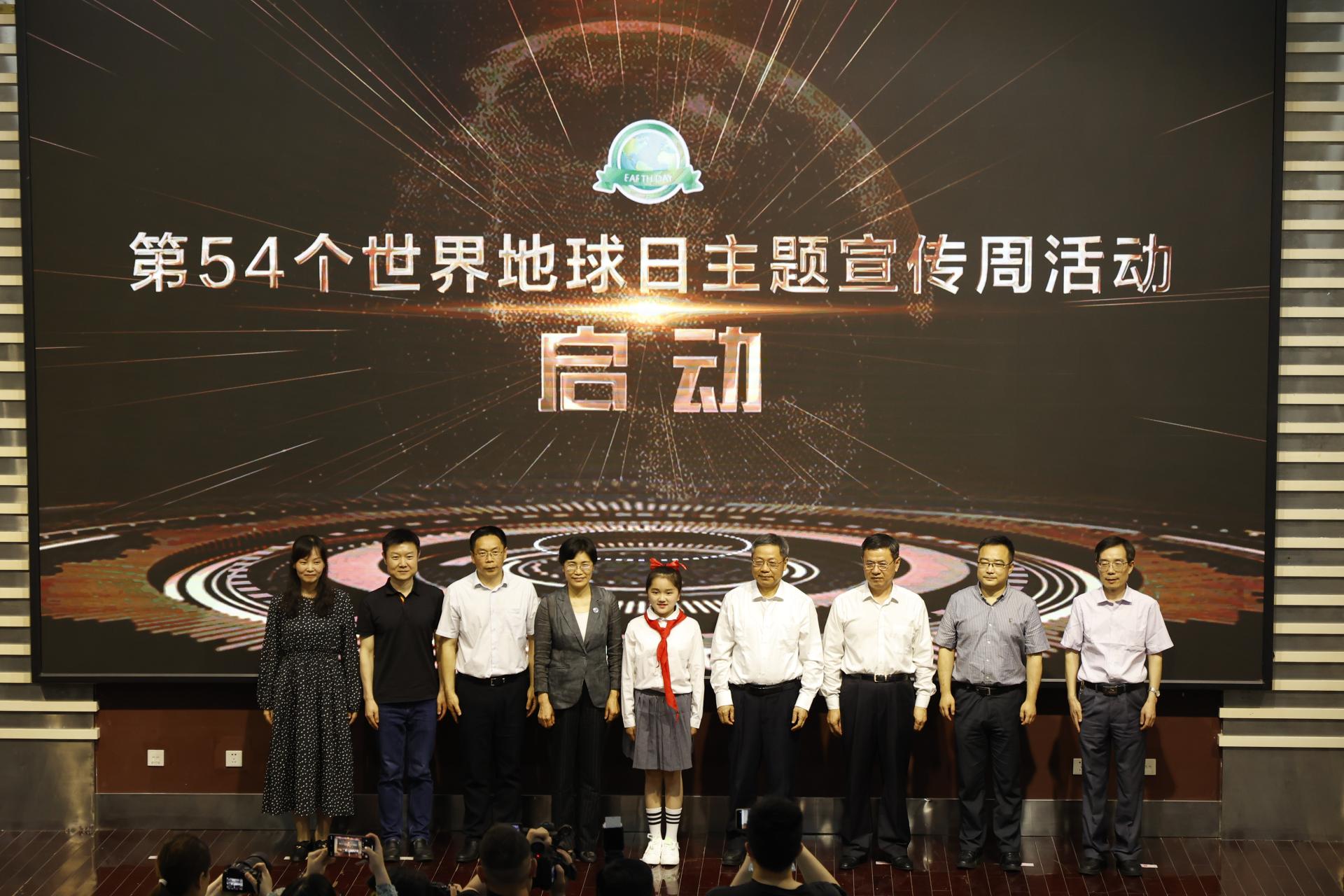 孙和平、黄晓玫、吴月朗、王甫、王力哲、张琥、杜纯、李发泉及学生代表共同开启屏幕,宣布第54个世界地球日主题宣传活动周正式启动。