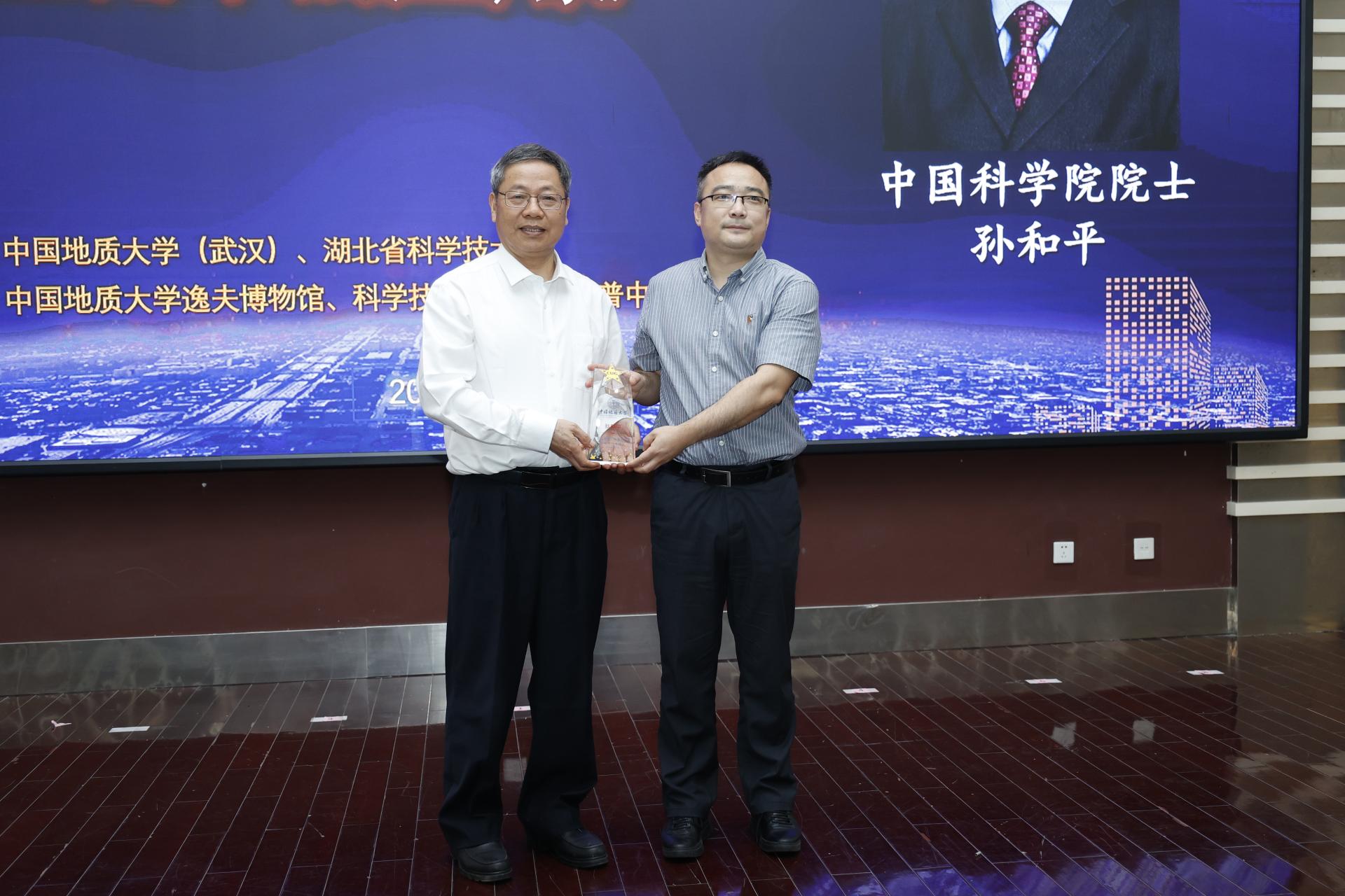 王力哲为孙和平院士颁发“宜居地球”科普大讲堂第四讲纪念证书。