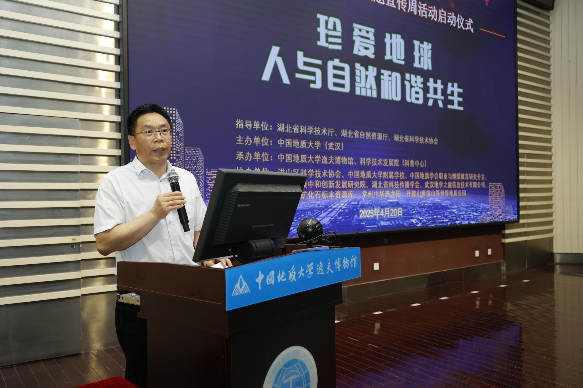 黄晓玫致欢迎辞。她指出,举办世界地球日主题宣传周活动,是深入学习贯彻党的二十大精神、全国两会精神,宣传习近平生态文明思想,促进人与自然和谐共生的重要举措。学校始终坚持弘扬“谋求人与自然和谐发展”的价值观,发挥在地质、资源、环境等领域的学科优势,积极开展科普教育,向全社会传播生态文明价值理念,为提升全民科学素养做出了地大贡献。她表示,立足新的发展阶段,学校将持续提升教育服务能力,推动科技人力资源、设施资源和成果资源的科普化,提升科普传播能力。她希望,省科技厅、省自然资源厅、省科协继续关心支持学校事业发展,与学校开展更深入更广泛的合作,为全民科学素养提升、自然资源事业高质量发展和教育强国建设做出更多贡献,在新的赶考之路上交出新的优异“答卷”。