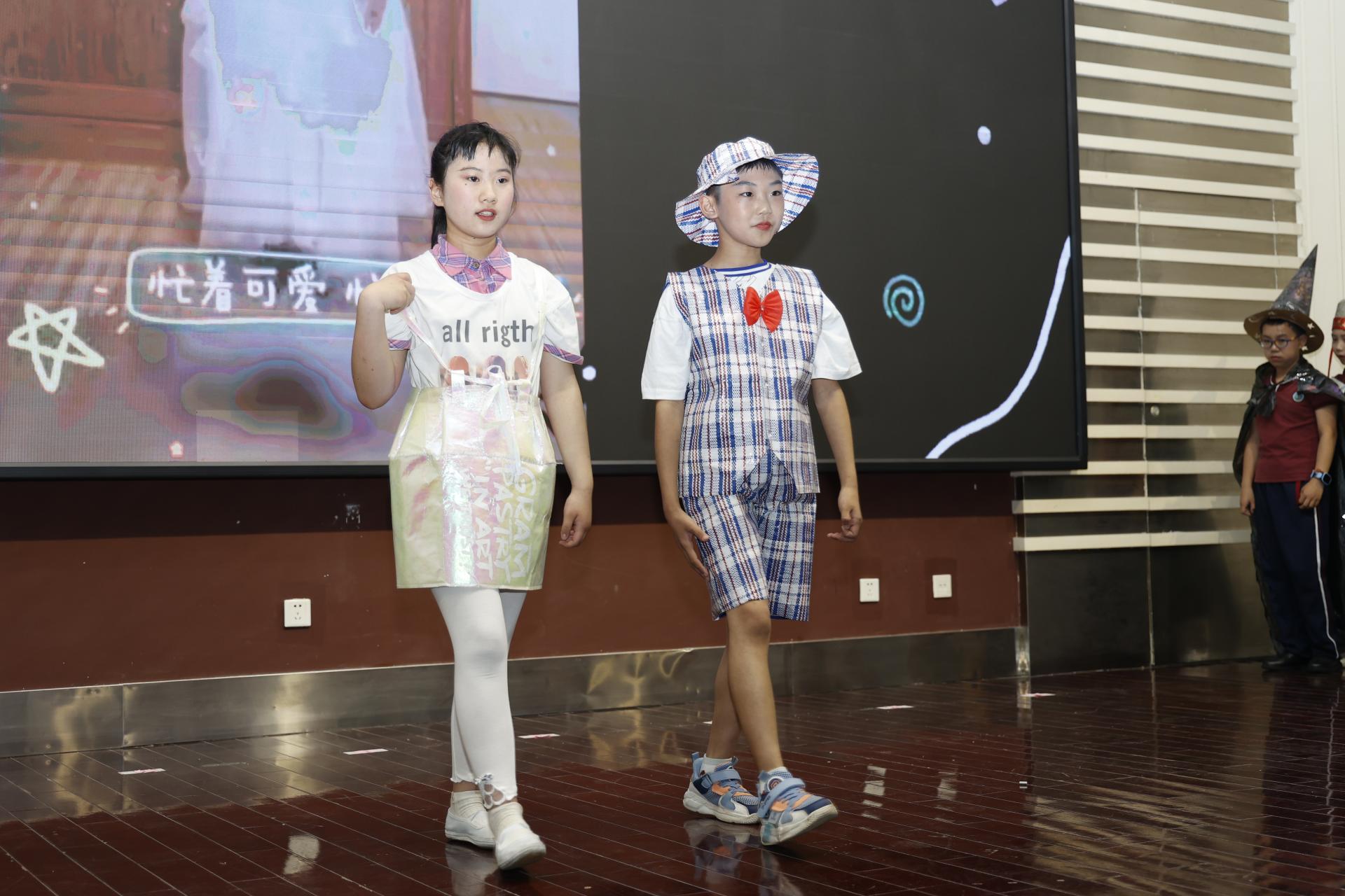 米兰附属学校的学生充分发挥想象力,用废弃的垃圾袋、报纸、易拉罐等材料创意组合,重新设计、裁剪、拼接制作成不同形状的上装以及下装,搭配成一套套别出心裁、新颖有趣的环保时装。“模特们”身着各式各样、独具创意的环保“时装”造型,伴随着动感十足的音乐,踏着欢快的步伐,在舞台上展现环保的独特魅力。