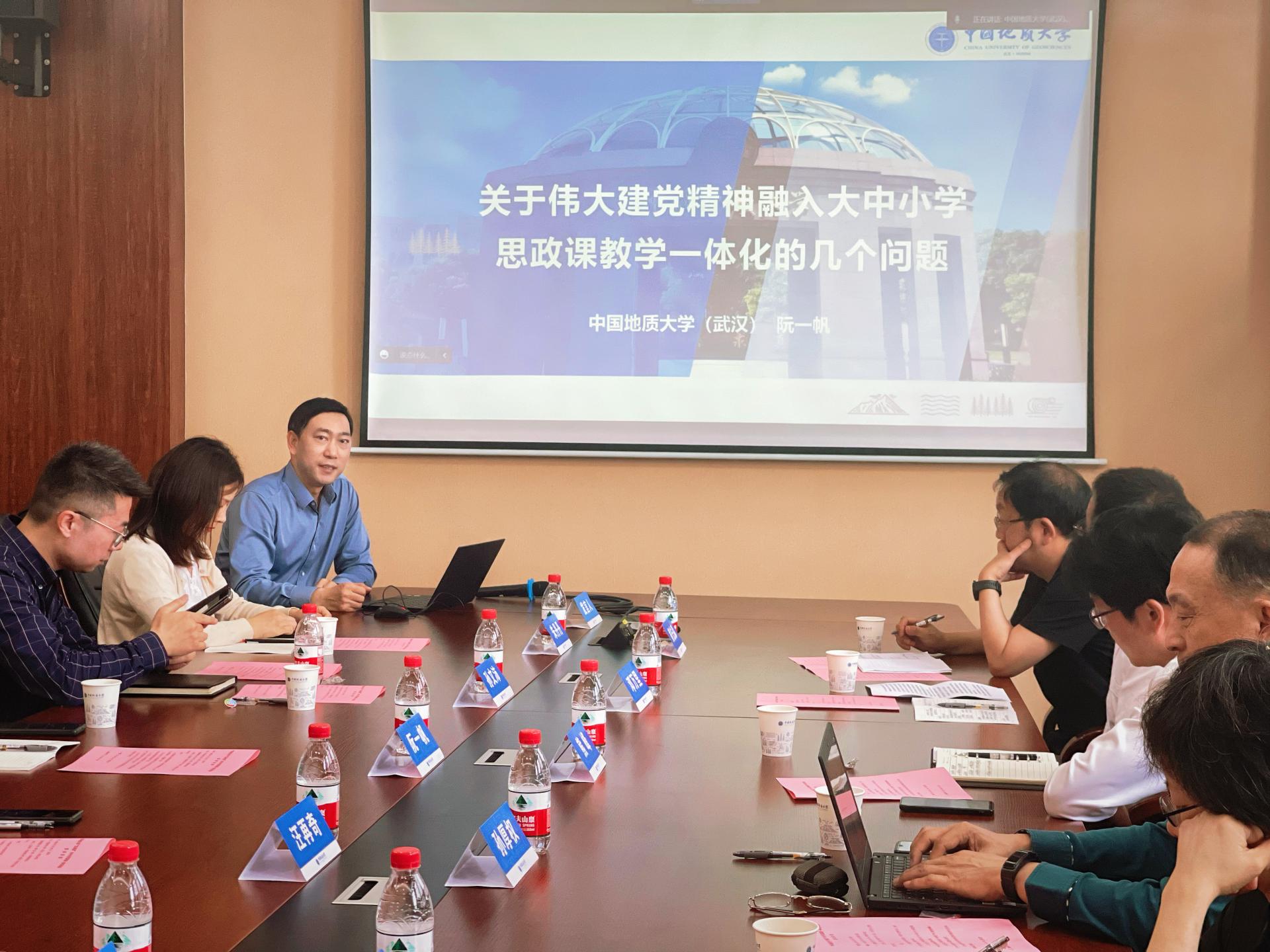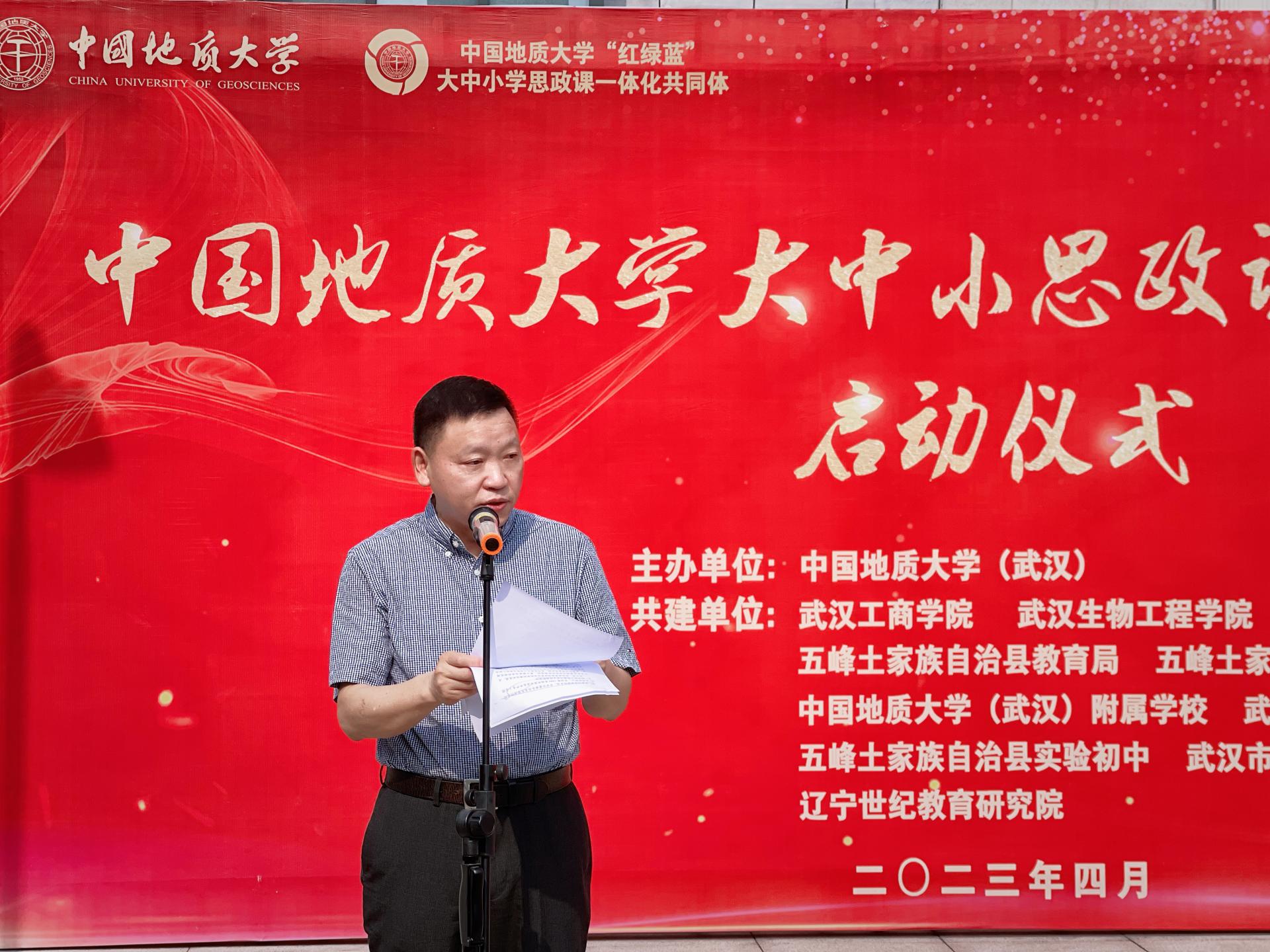 武汉工商学院、武汉生物工程学院、五峰土家族自治县教育局、五峰县高级中学、五峰县实验初中、米兰附属学校、武汉市卓刀泉小学等成员单位相关负责人介绍了各地各校开展大中小学思政课一体化建设的经验,并围绕打造一批理论与实践相结合的创新性研究型工作平台,努力形成一套工作机制、孵化一批品牌活动、打造一批示范“金课”、产出一批优质课程资源、形成一批高水平教学研究成果、提供一批高质量智库咨政报告、培养一支优秀师资队伍等方面进行深入的交流和探讨。与会代表纷纷表示,将在地大的带领下全力推进“红绿蓝”思政课一体化共同体建设,加强校校合作,共同探索和建立共享机制,深化思政课程改革,形成具有地大特色、可借鉴、可推广的工作模式和体制机制。