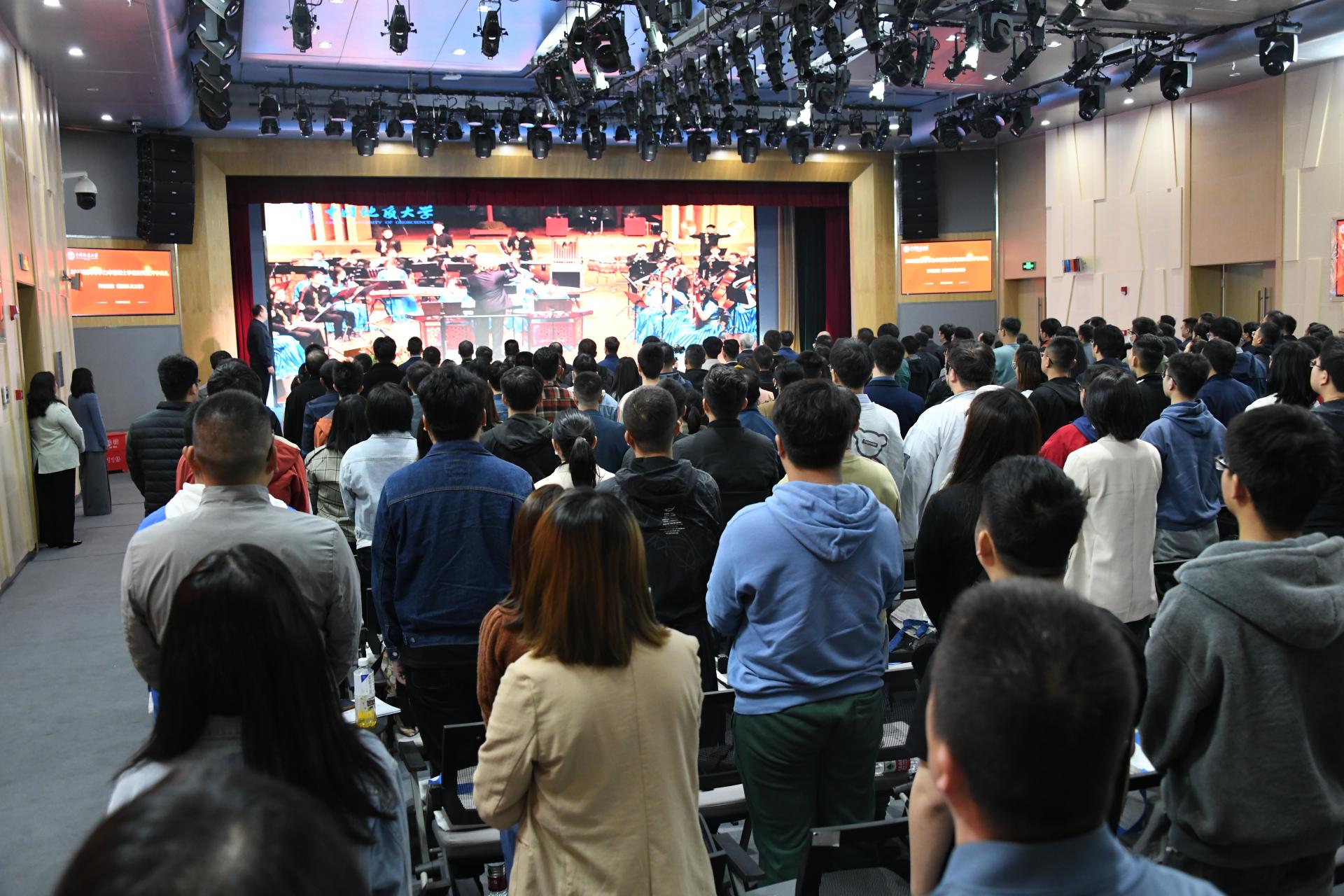 典礼开始,全体师生起立,奏唱《中华人民共和国国歌》。