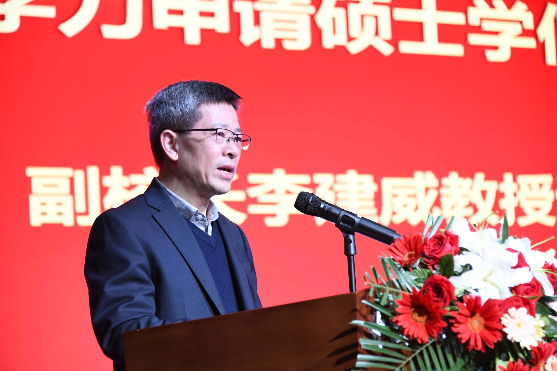 李建威向今年新入学的400余名同等学力申请硕士学位研究生表示欢迎,并以《志存高远 追求卓越》为题发表讲话。他说,建校70余年来,地大始终与党和国家同呼吸共命运,与中国自然资源行业同发展共荣辱,坚守为党育人、为国育才的初心使命,秉承“艰苦朴素、求真务实”的校训精神,彰显“上天、入地、下海、登极”的豪迈气概,积极推进地球科学领域国际知名研究型大学建设,努力培养自然资源行业领军人才,为行业单位输送了大量优秀毕业生,为服务国家战略需求和区域经济社会发展提供了重要人才支撑。