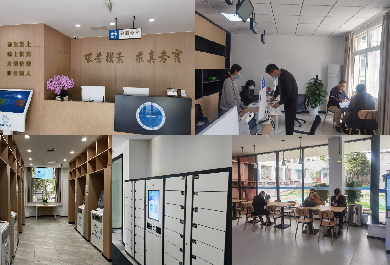 学校未雨绸缪,在未来城校区规划设计中便考虑到师生办事需求,建设了线下服务大厅,并随着未来城校区搬迁入驻,未来厅同步启用。