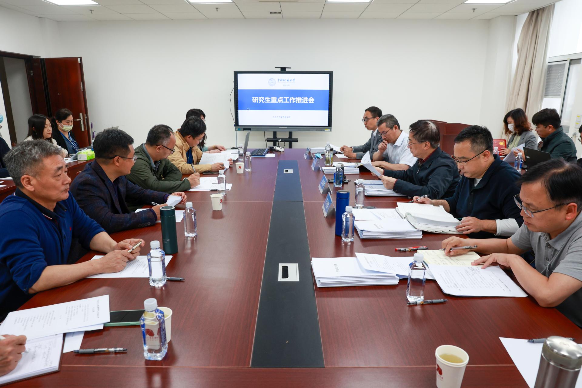 地大新闻网讯(通讯员 张健 王斯韵)近日,为深入开展学习贯彻习近平新时代中国特色社会主义思想主题教育,落实学校研究生教育会议精神,筹备第十三次党代会,扎实推进“双一流”建设,校长王焰新院士,副校长、研究生院院长王力哲调研研究生教育重点工作。研究生院、发展规划与学科建设处和相关培养单位负责人、相关工作责任人参加会议。