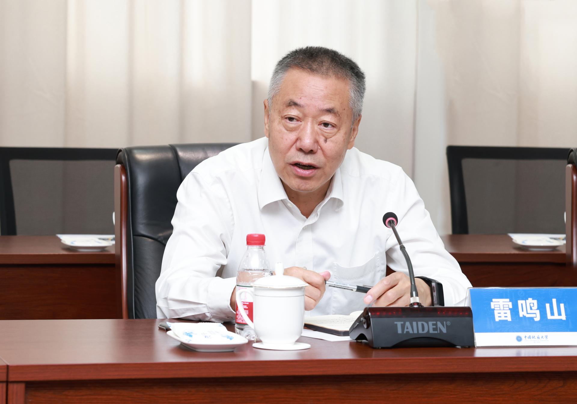 王焰新对雷鸣山一行的到来表示欢迎并介绍了目前学校事业发展的近况。他强调,要始终坚持“四个面向”,把自身建设同国家战略目标、战略任务紧密对接,为解决国家重大战略需求作出地大应有的贡献。他建议,校企双方加强人才培养合作和交流共享,共建学生实习、实践基地,支持学校提高人才培养质量,为在校生和毕业生提供实践平台和创业平台。同时,地大整合优质教育资源,在高层次人才教育培训等方面为三峡集团提供支持。他希望,一方面,双方通过共建实验室实现数据共享,为企业、地方和国家科学决策提供重要参考,另一方面,加强重大科学仪器设备研制,逐步实现国产替代,实现高水平科技自立自强。