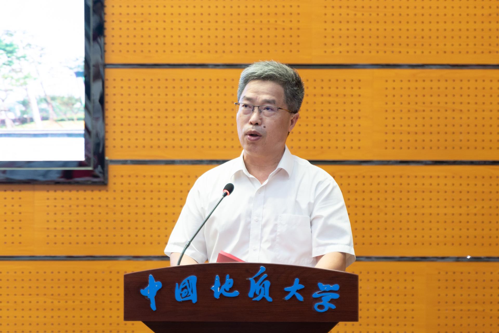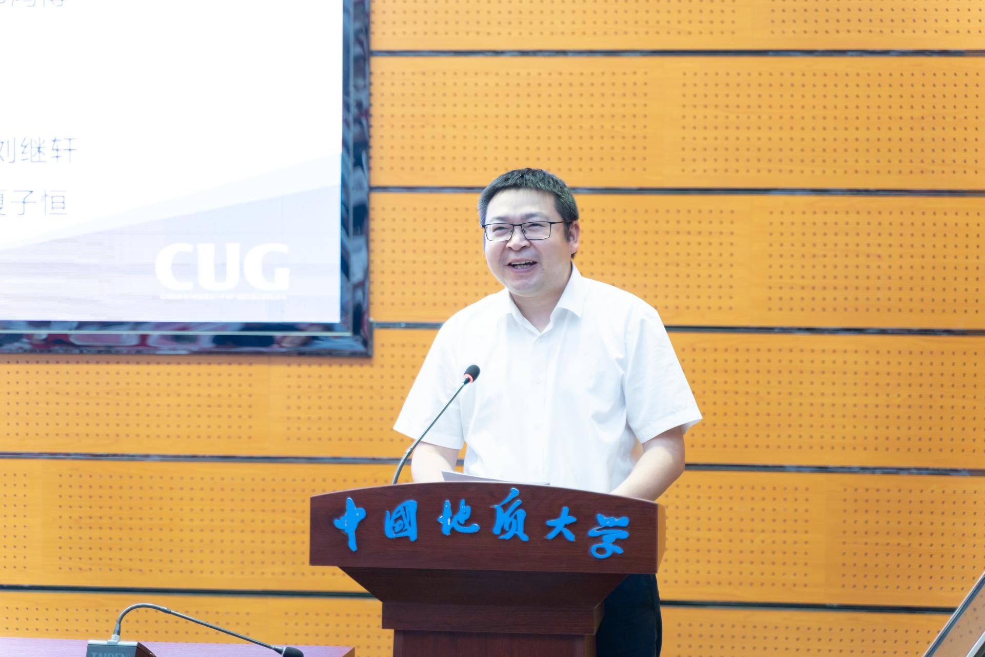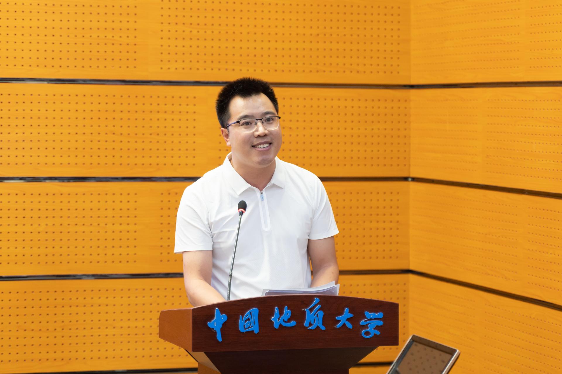 校友和社会合作处处长陈华荣宣读2023届校友大使名单。他希望校友大使弘扬地大精神,密切联系班级同学,积极参加当地校友分会建设,热情服务校友、推荐优秀校友、传递母校和校友总会资讯,推动校友与母校共赢共荣。