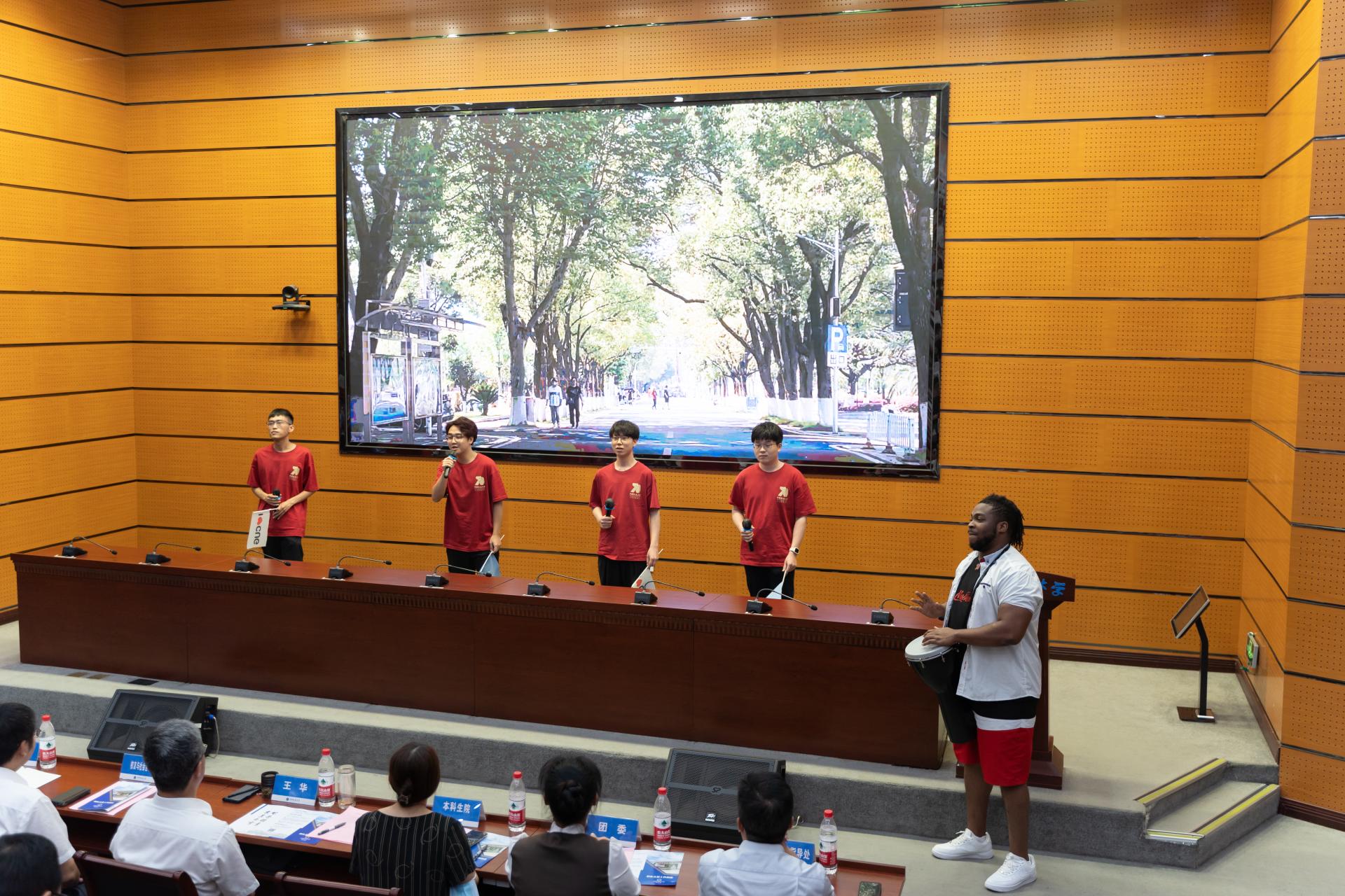 王可一、于跃洋、黄言章、殷浩林以及国际教育学院王强同学共同唱奏《凤凰花开的路口》,点燃大会氛围。